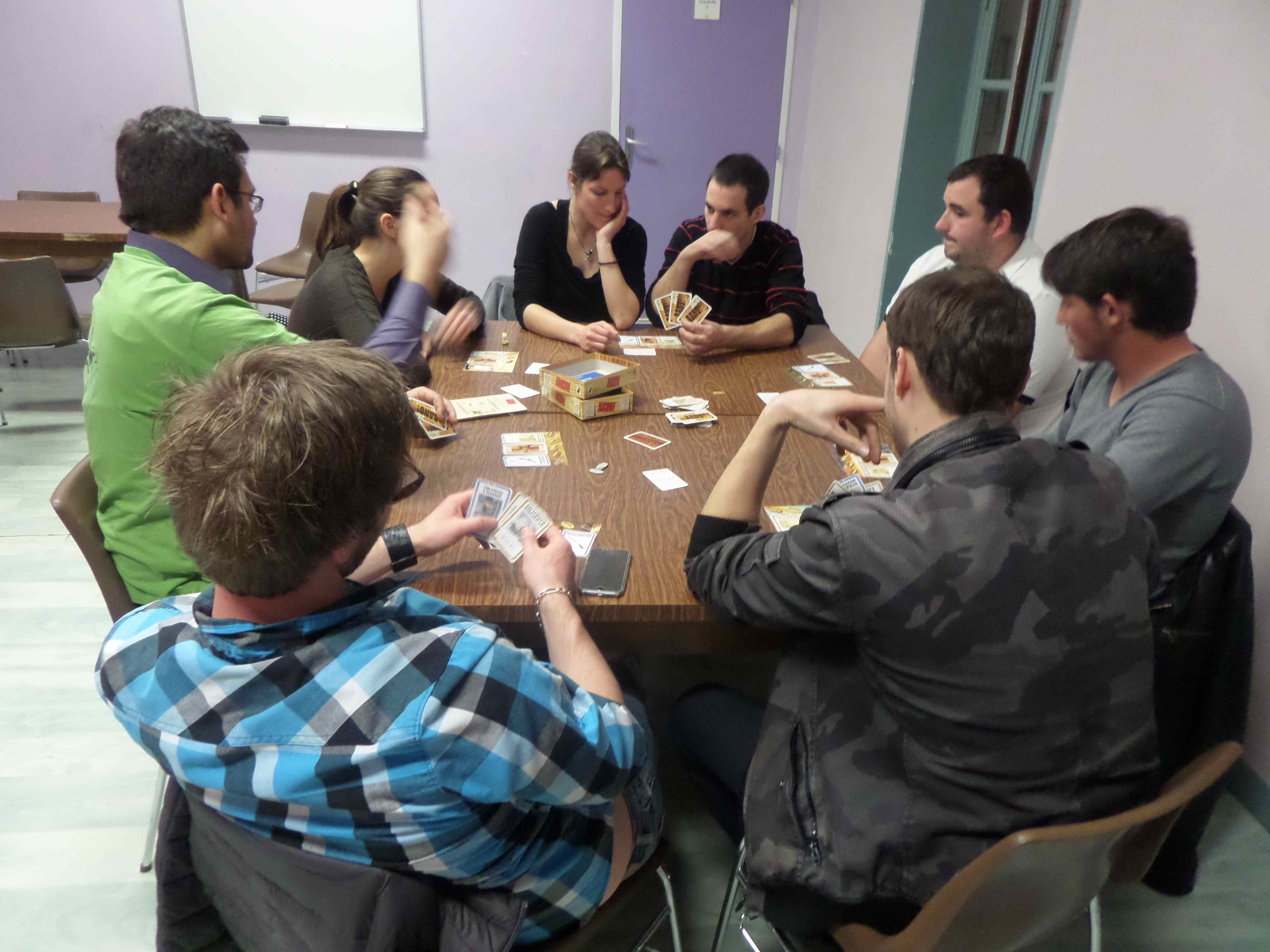 En haut, j’ai pu faire une partie d’AVENTURIERS DU RAIL EUROPE après avoir donné les explications et guidé la partie de débutants puis avoir remplacé une personne devant rapidement partir.