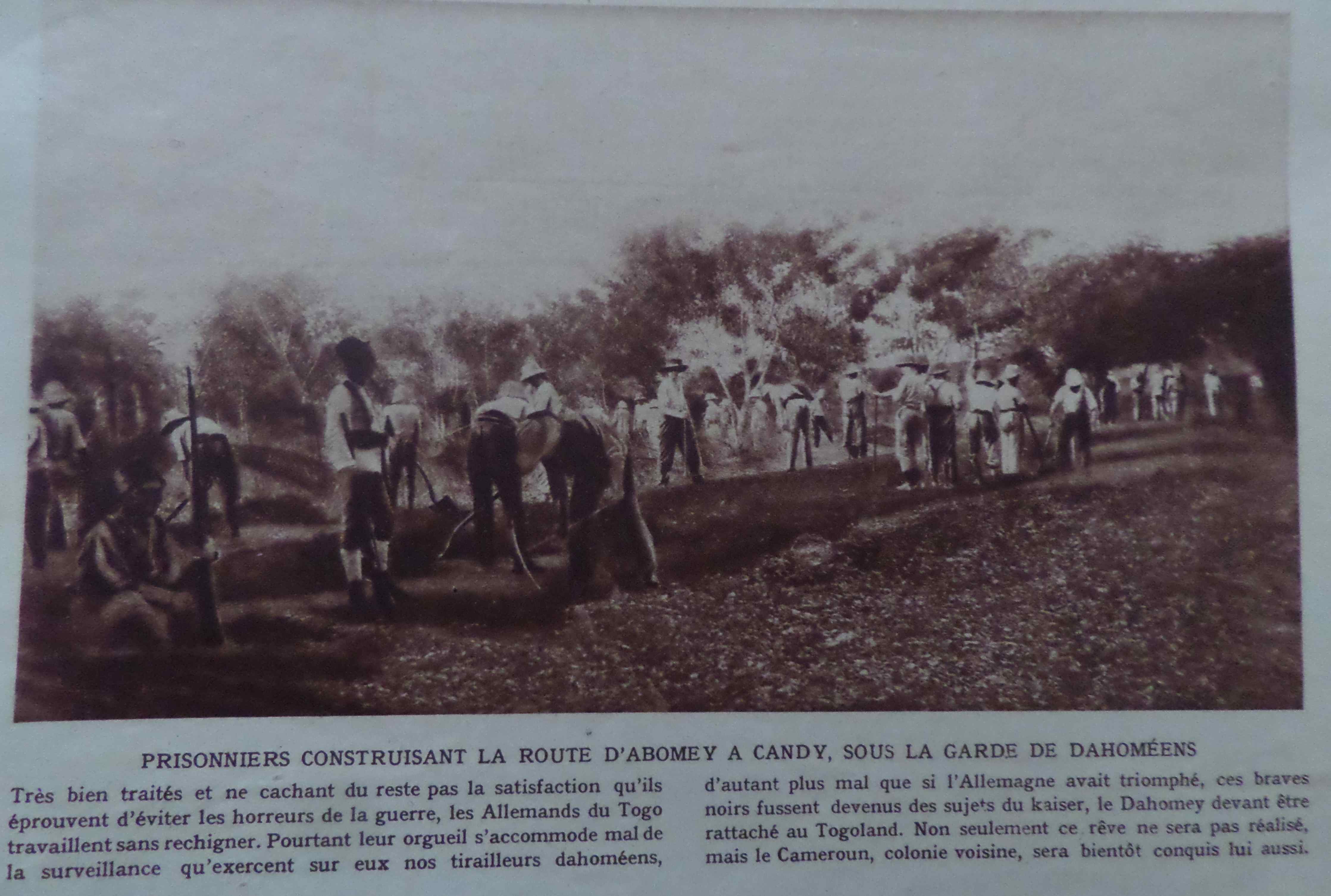 Les Allemands ne purent conserver leurs quelques colonies africains face à la puissance des colonies françaises et britanniques. Ayant perdu le Togo, les soldats allemands faits prisonniers sont employés sur des chantiers au Dahomey français voisin.