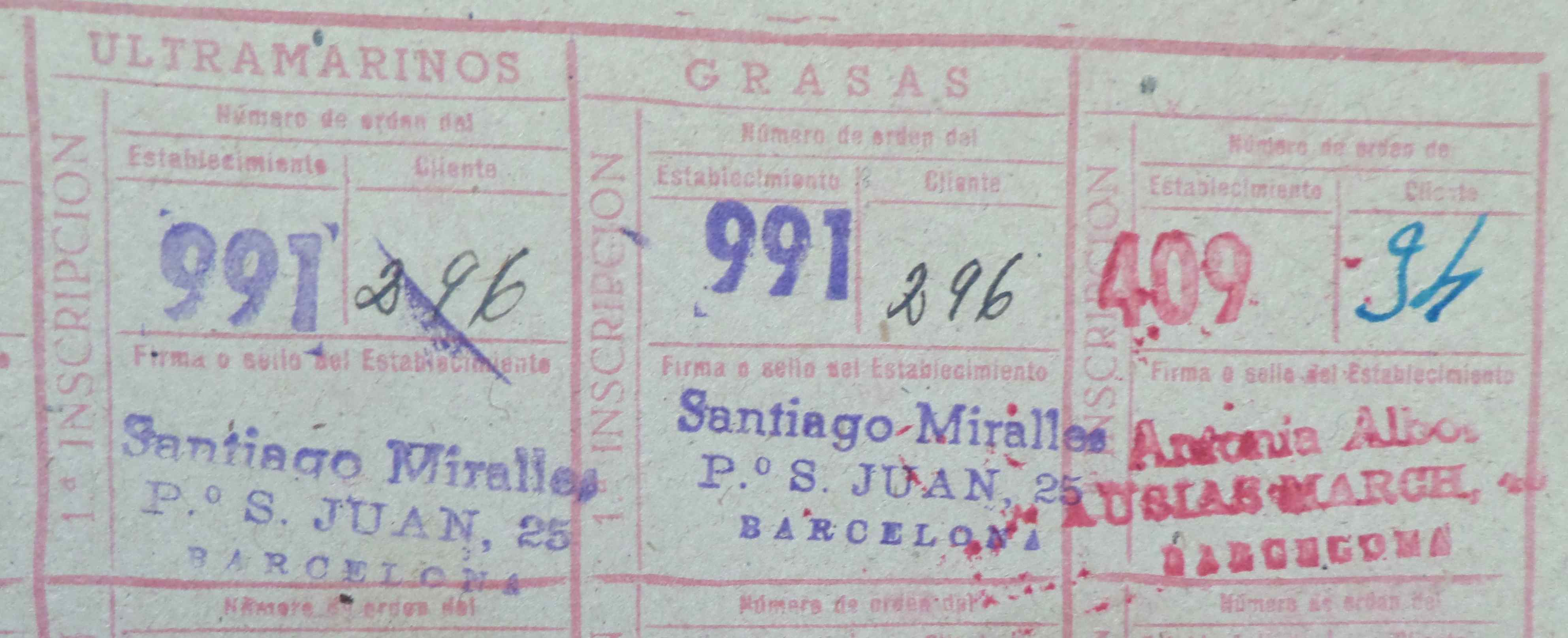 Santiago Miralles au 25 du Paseo San Juan pour l’épicerie et les graisses ou chez le boulanger Antonia Albos, calle Ausias March, dans le même secteur proche du Parc de la Citadelle et du centre ancien. On va le voir.