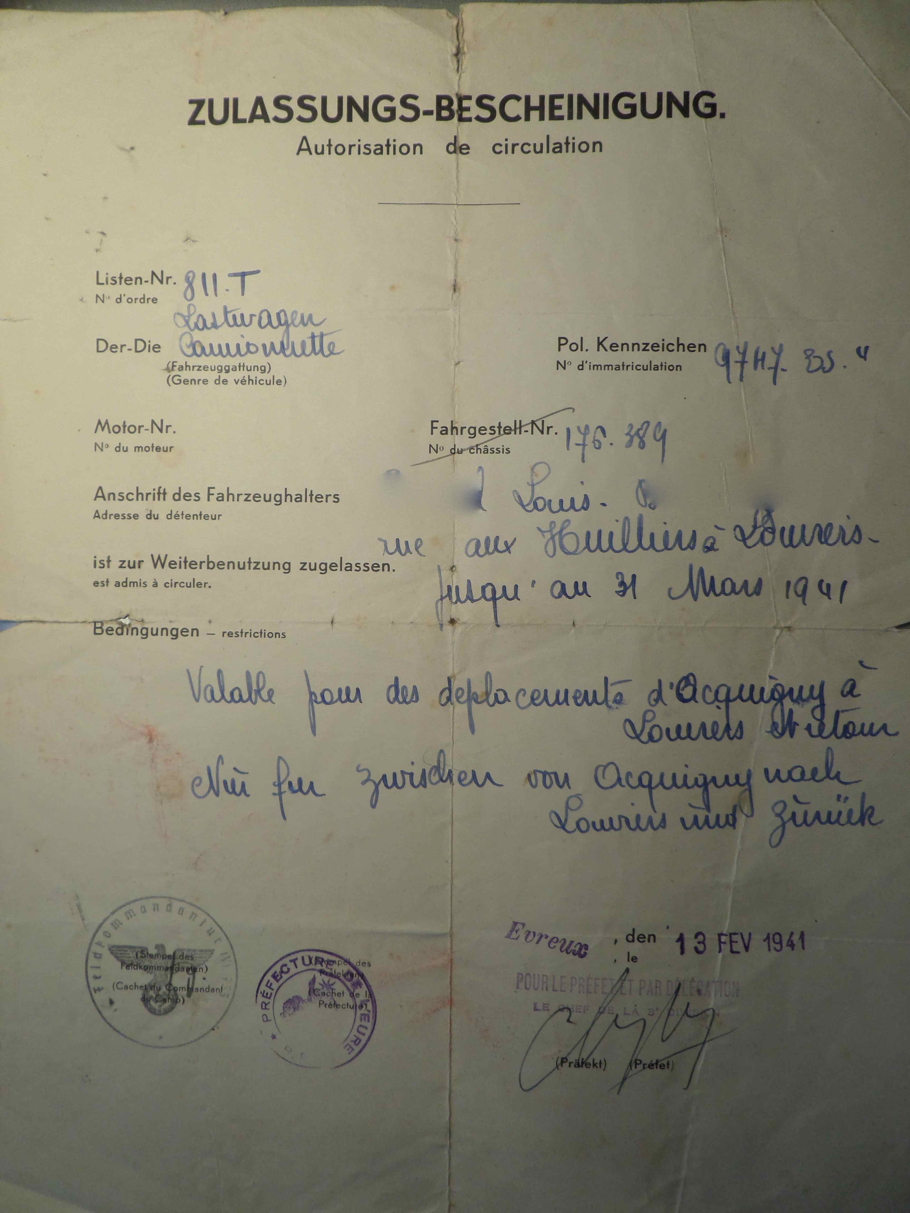 Ce document avait reçu le double visa des autorités civiles de la Préfecture de l’Eure et des autorités militaires d’Occupation.