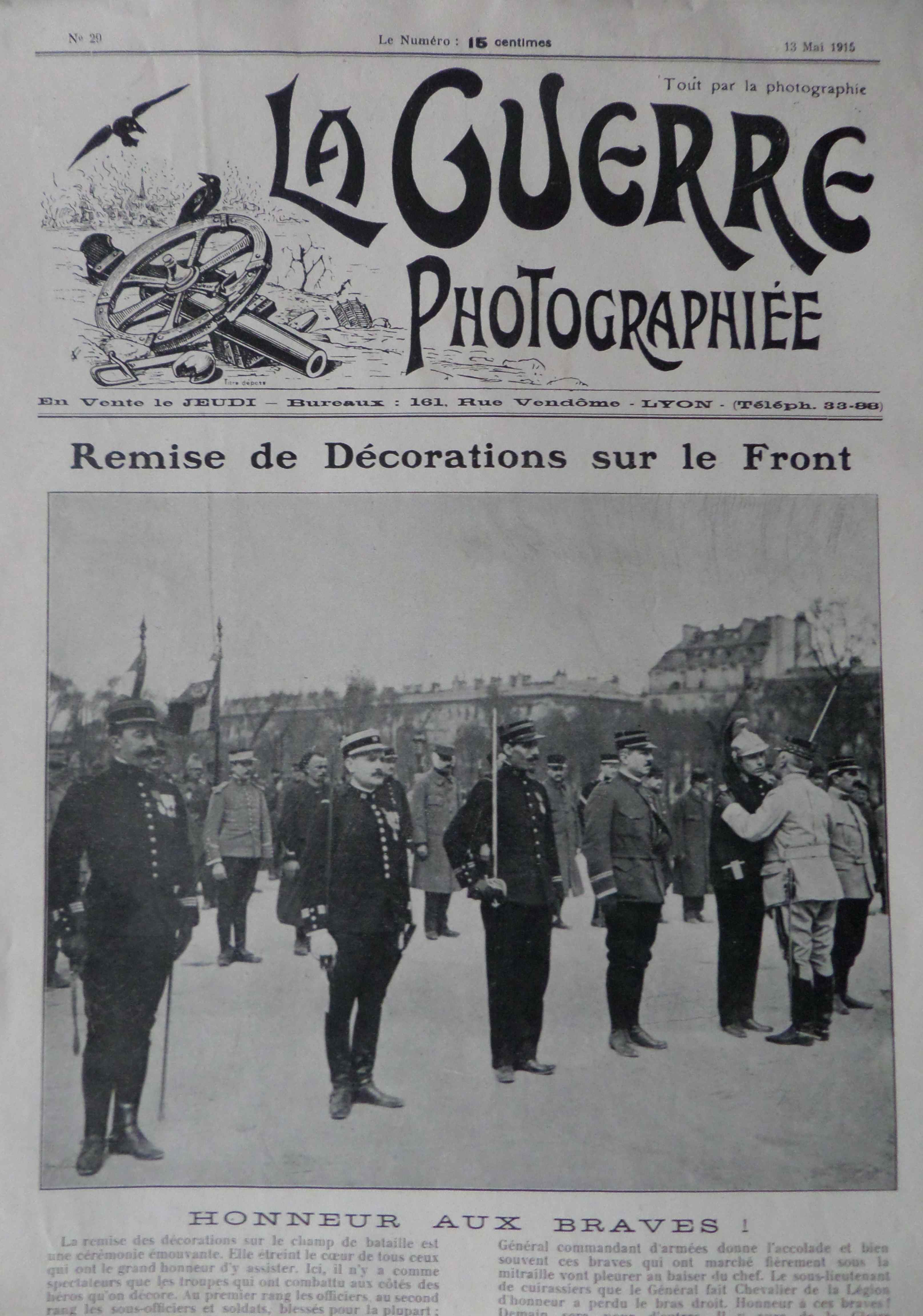 Ce numéro est assez intéressant mais la couverture semble se moquer du monde: « Remise de Décorations sur le Front »… alors qu’on a vraiment l’impression que cette cérémonie se passe place Bellecour à Lyon, bien loin du front de 14-18 !