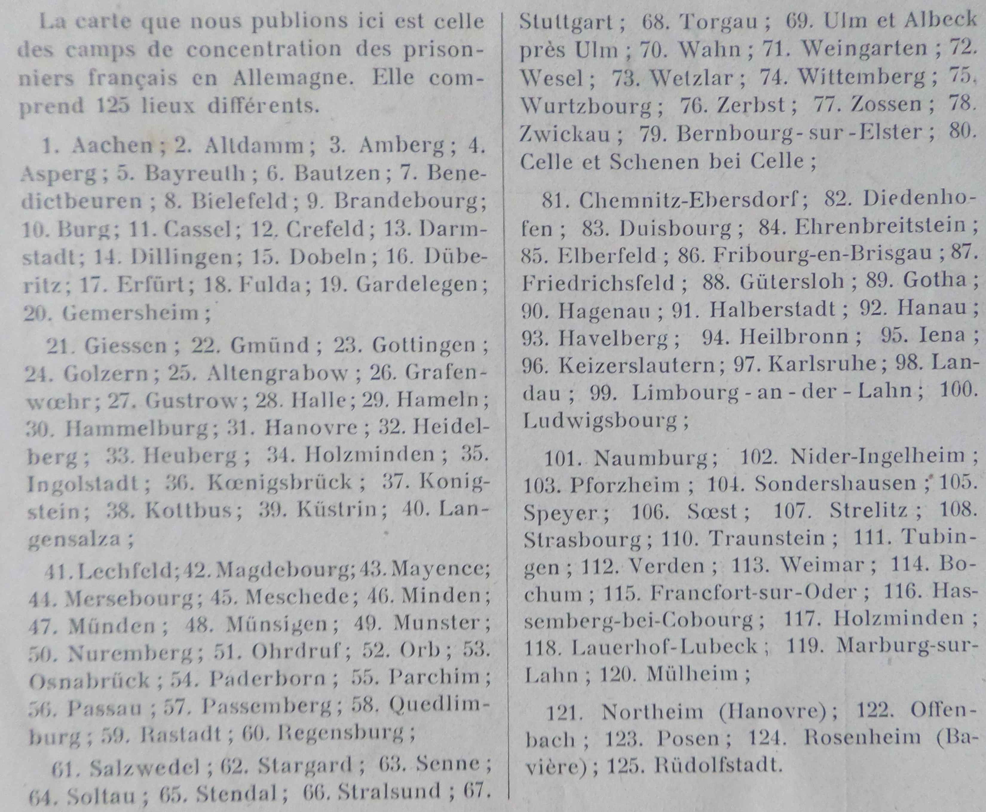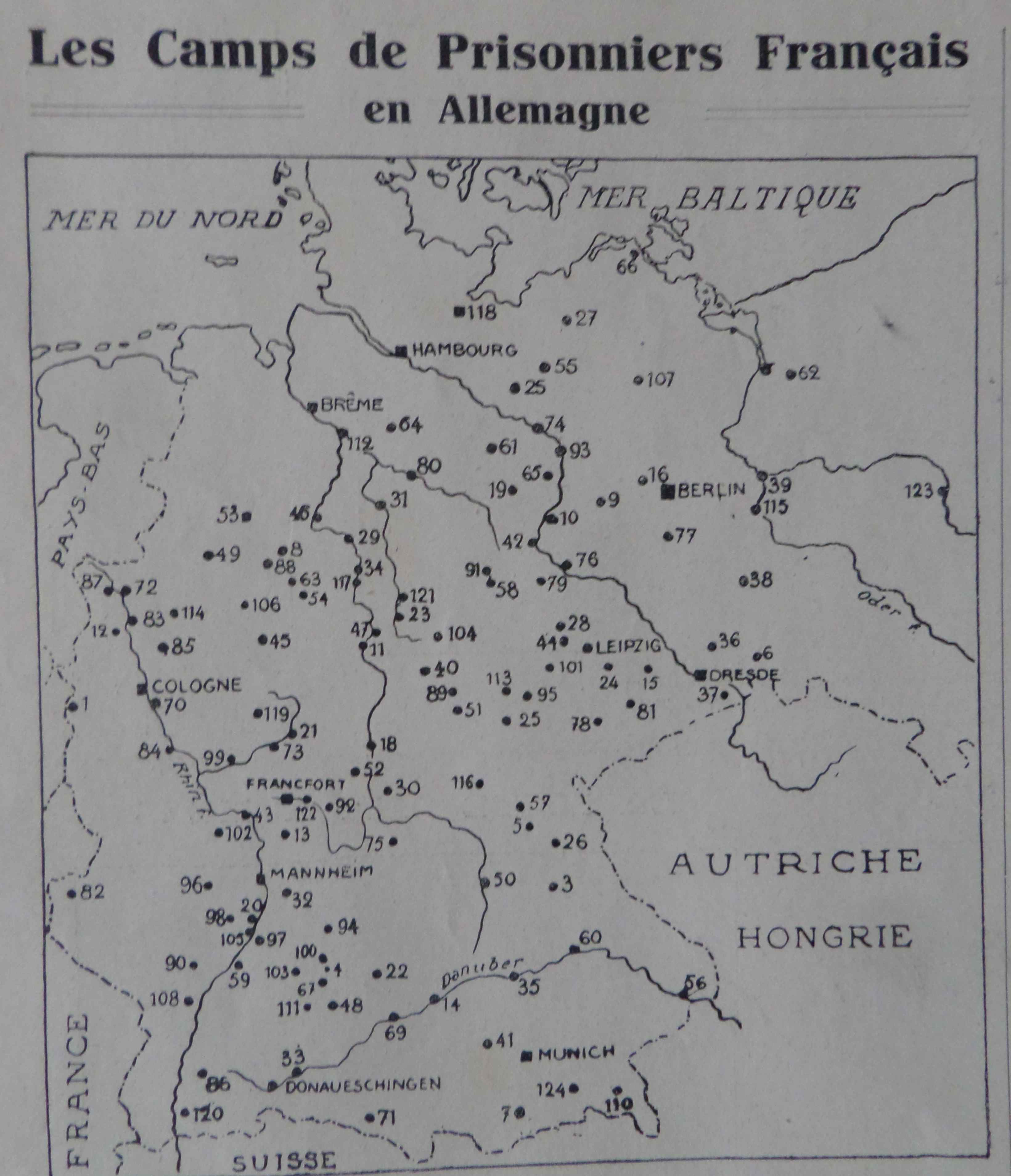 Enfin, un intéressant document que cette carte nous présentant les camps de prisonniers de guerre dont le territoire allemand s’est couvert…