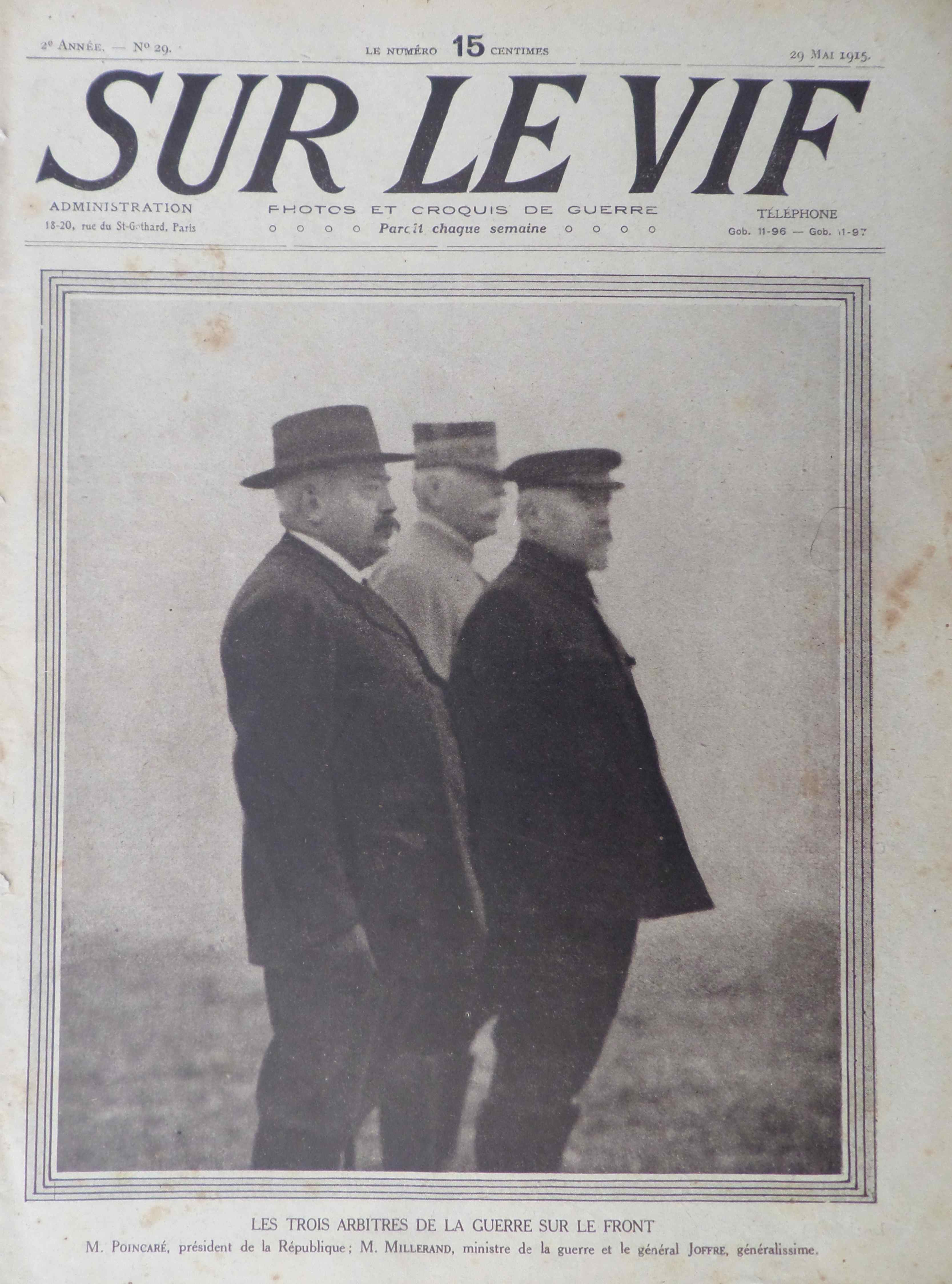 Une visite de Poincaré le Président de la République, Millerand le ministre de la guerre et Joffre sur le front: