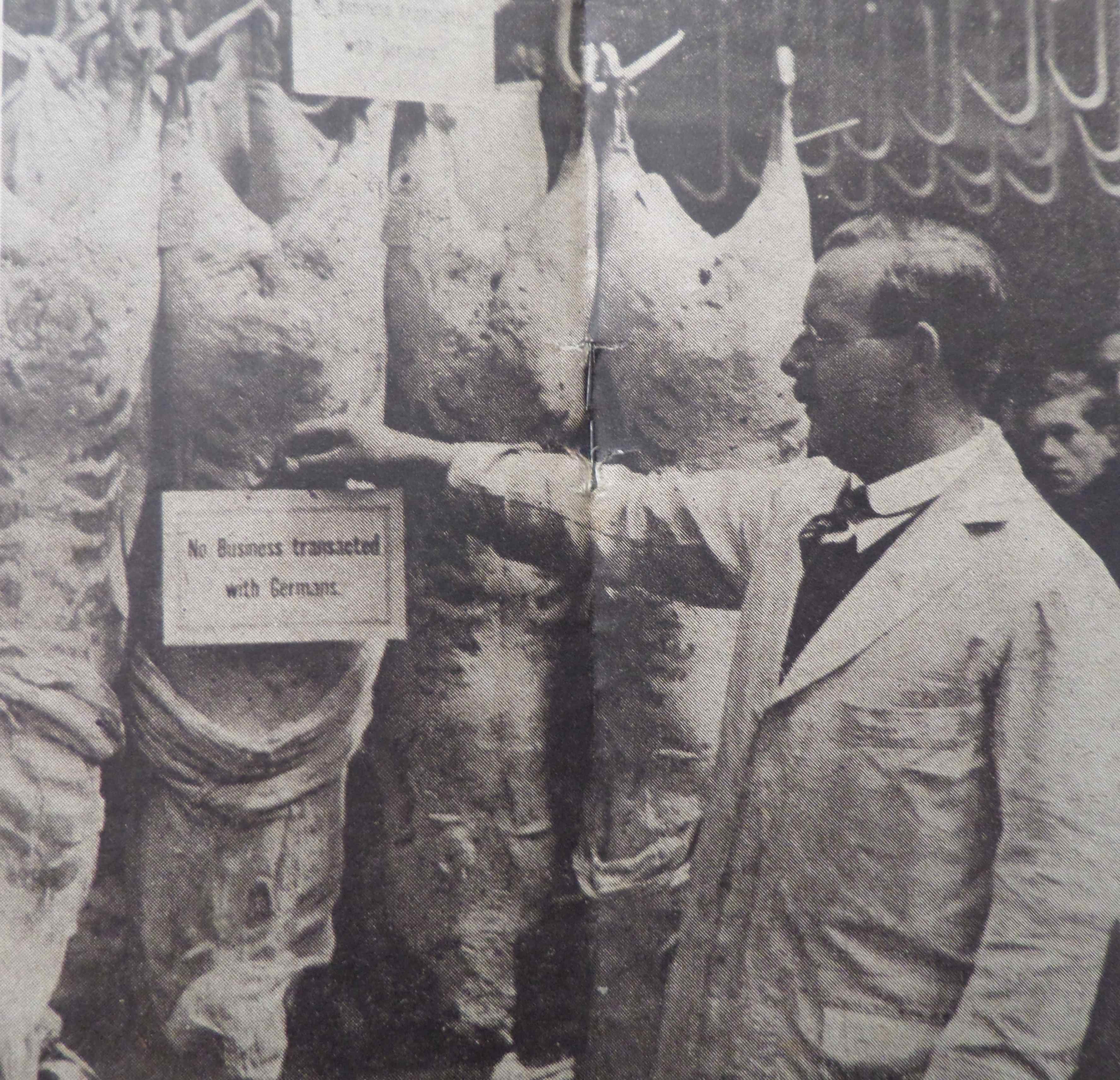 panonceaux annonçant que de la viande ne sera plus vendue aux résidents allemands.