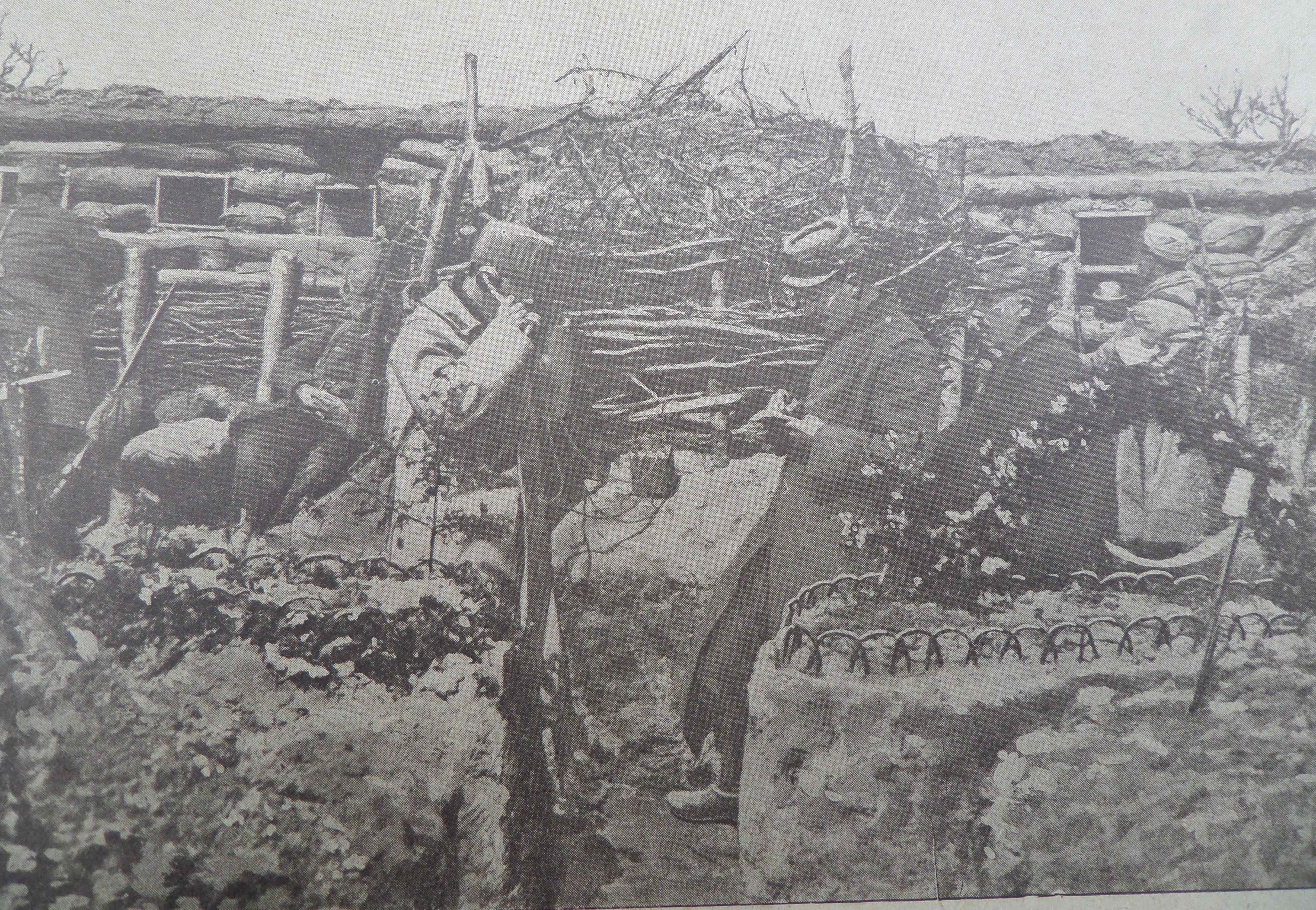 La vie dans une tranchée de première ligne non localisée suivant la légende. Certains dorment, d’autres attendent, les derniers observent. Une tranchée bien propre, d’école ! Tout y est… Trop beau pour être vrai !