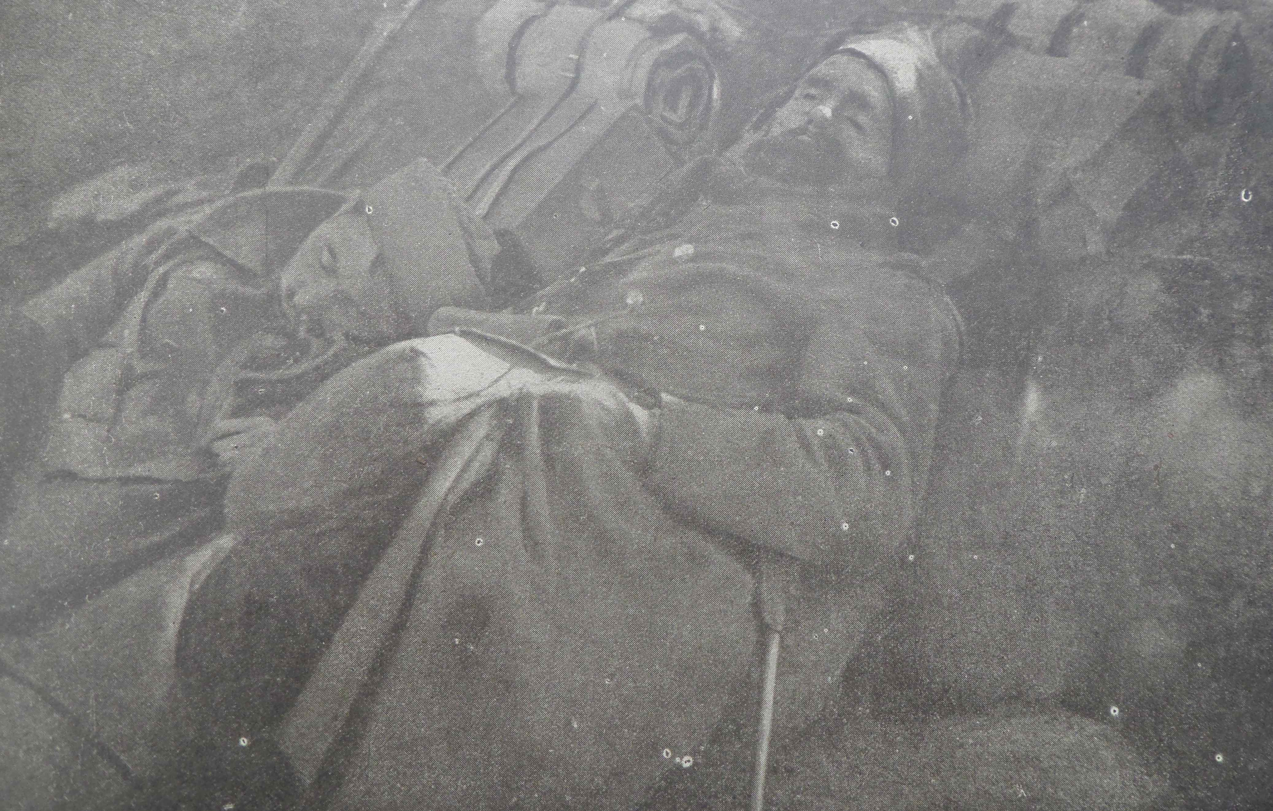 Après les combats, des hommes se reposent et dorment à même le sol comme le montre ce reportage de la page centrale…
