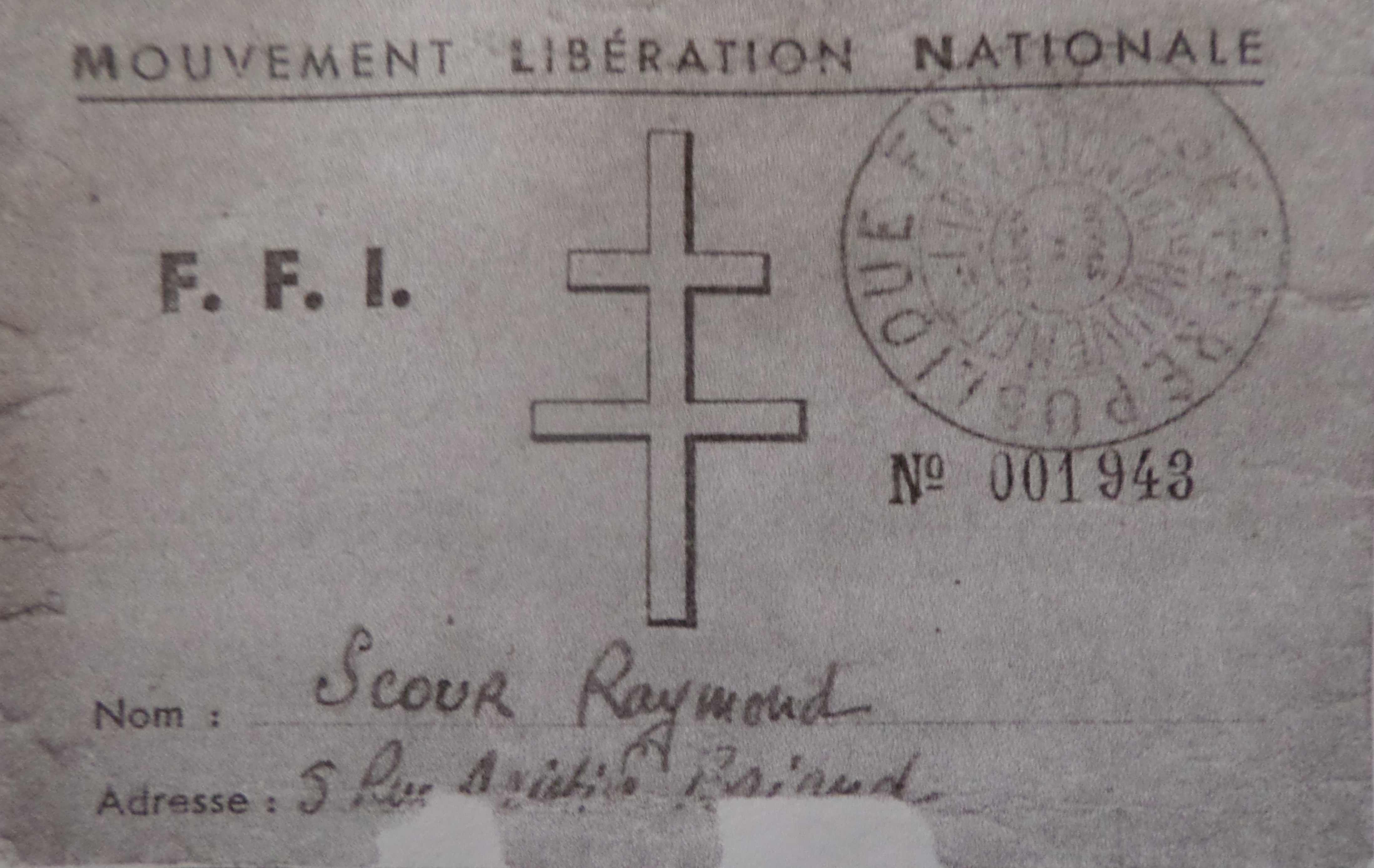 Lors de son congés d’armistice en 1943, il entra dans les FFI comme en atteste cette carte…