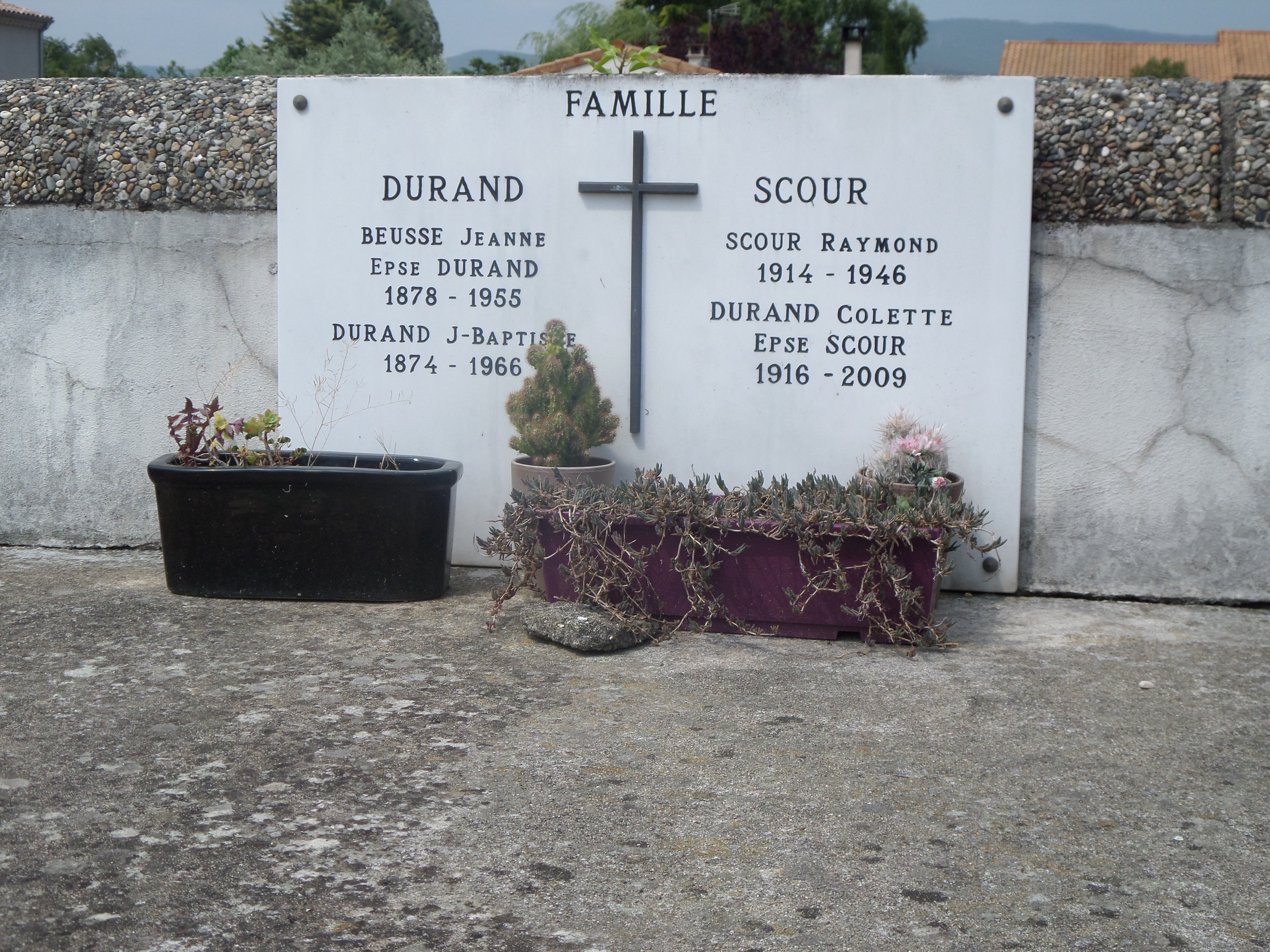 Né à Kayes au Soudan le 3 mars 1914 de parents bretons (à Landerneau dans le Finistère où on trouve encore des personnes portant ce patronyme dans les Pages Blanches de l’annuaire), c’est certainement grâce à l’aviation et à l’aérodrome de Montélimar si proche d’Ancone que Raymond Scour se retrouve aujourd’hui inscrit sur le monument aux morts du village. Il épousa en effet en 1937 une fille du village, Colette Durand, comme en atteste le caveau familial du cimetière du village.