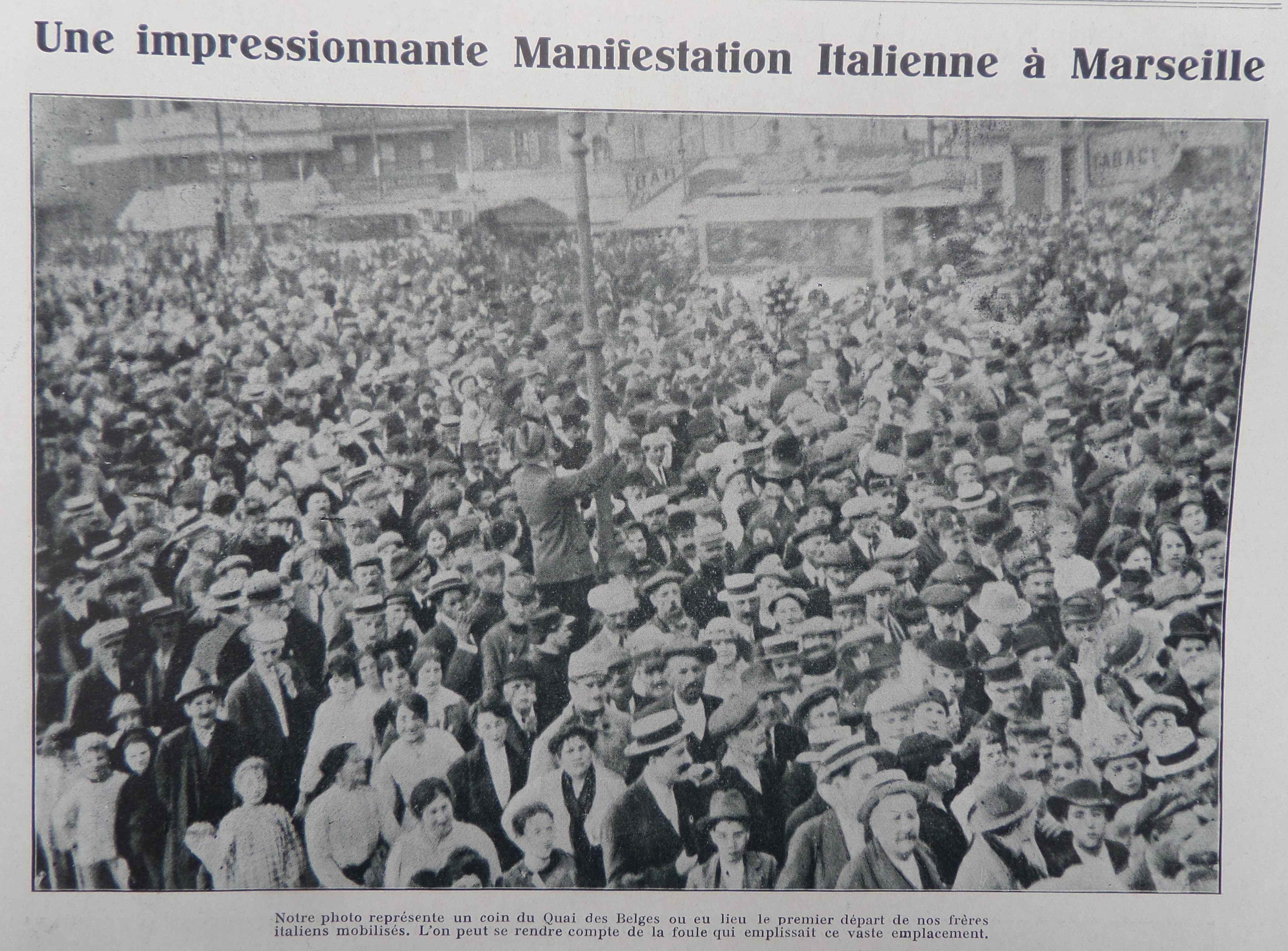sur le quai des Belges (Vieux Port) pour accompagner les Italiens de la ville mobilisés et partant pour le front du Trentin.