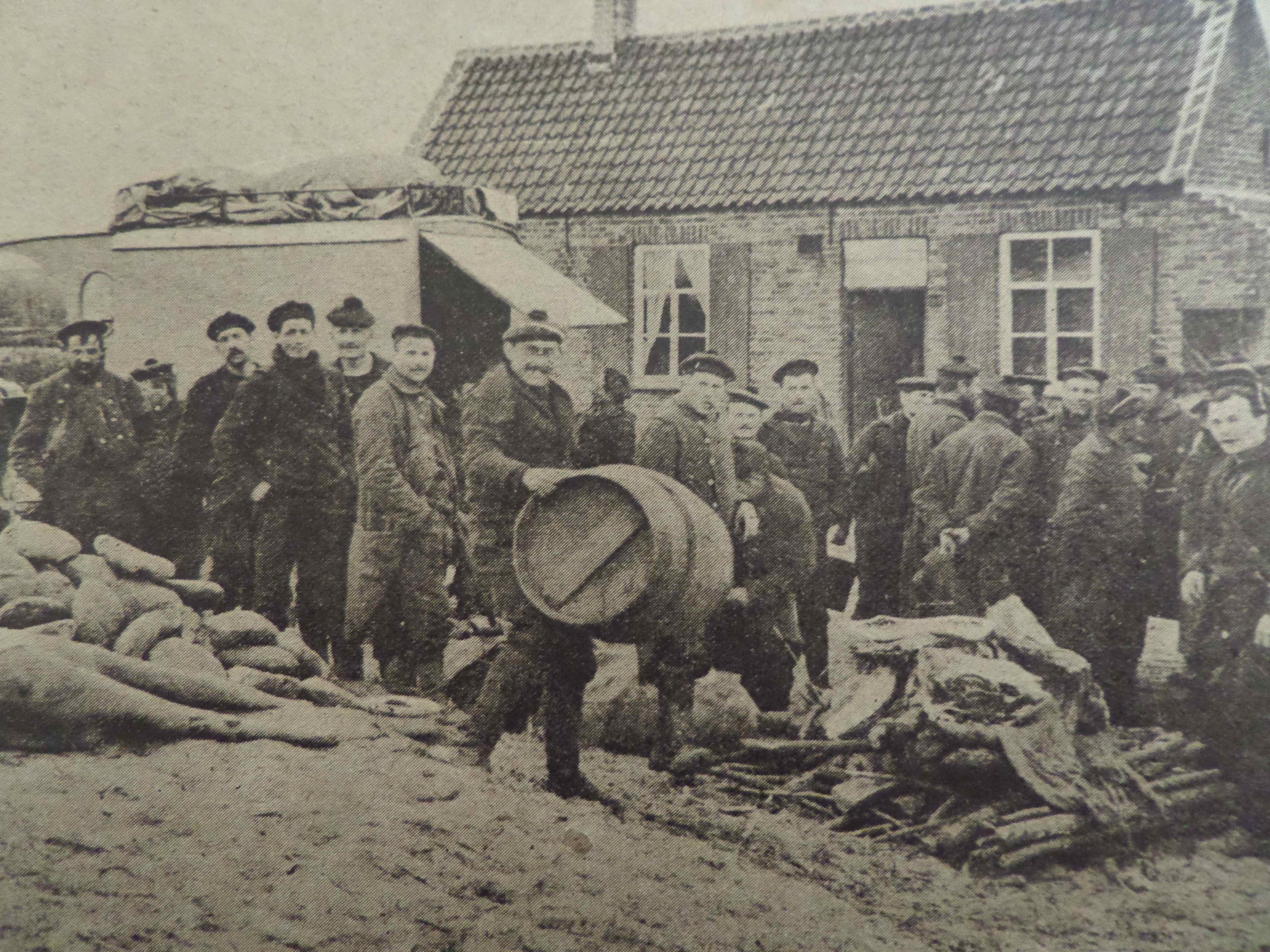 Les Mathurins en question sont des troupes des équipages de la Marine devenus biffins dans la région belge de Dixmude et de l’Yser. On nous les présente au repos…