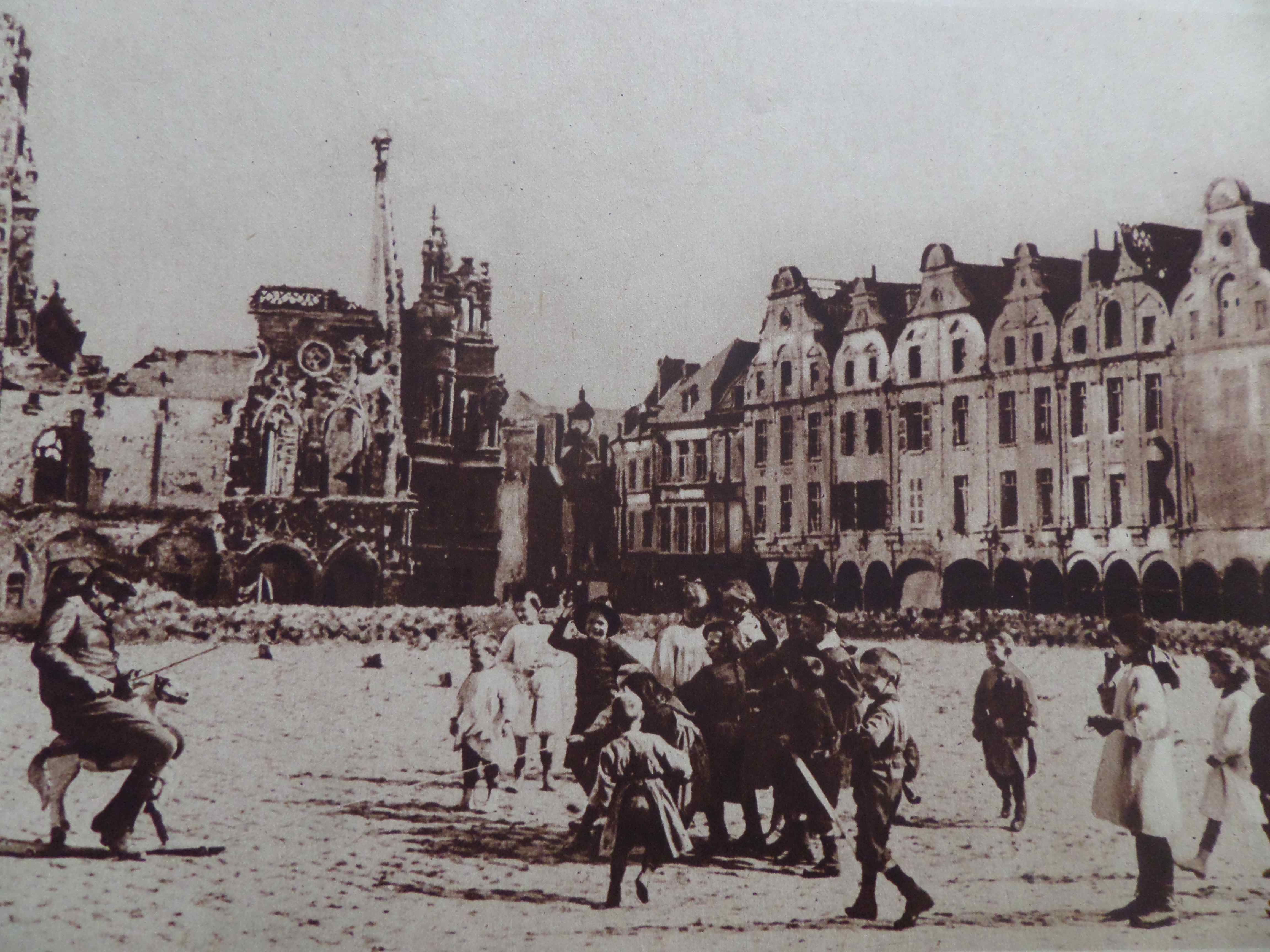 Les destructions d’Arras mais une image de jeux d’enfants…