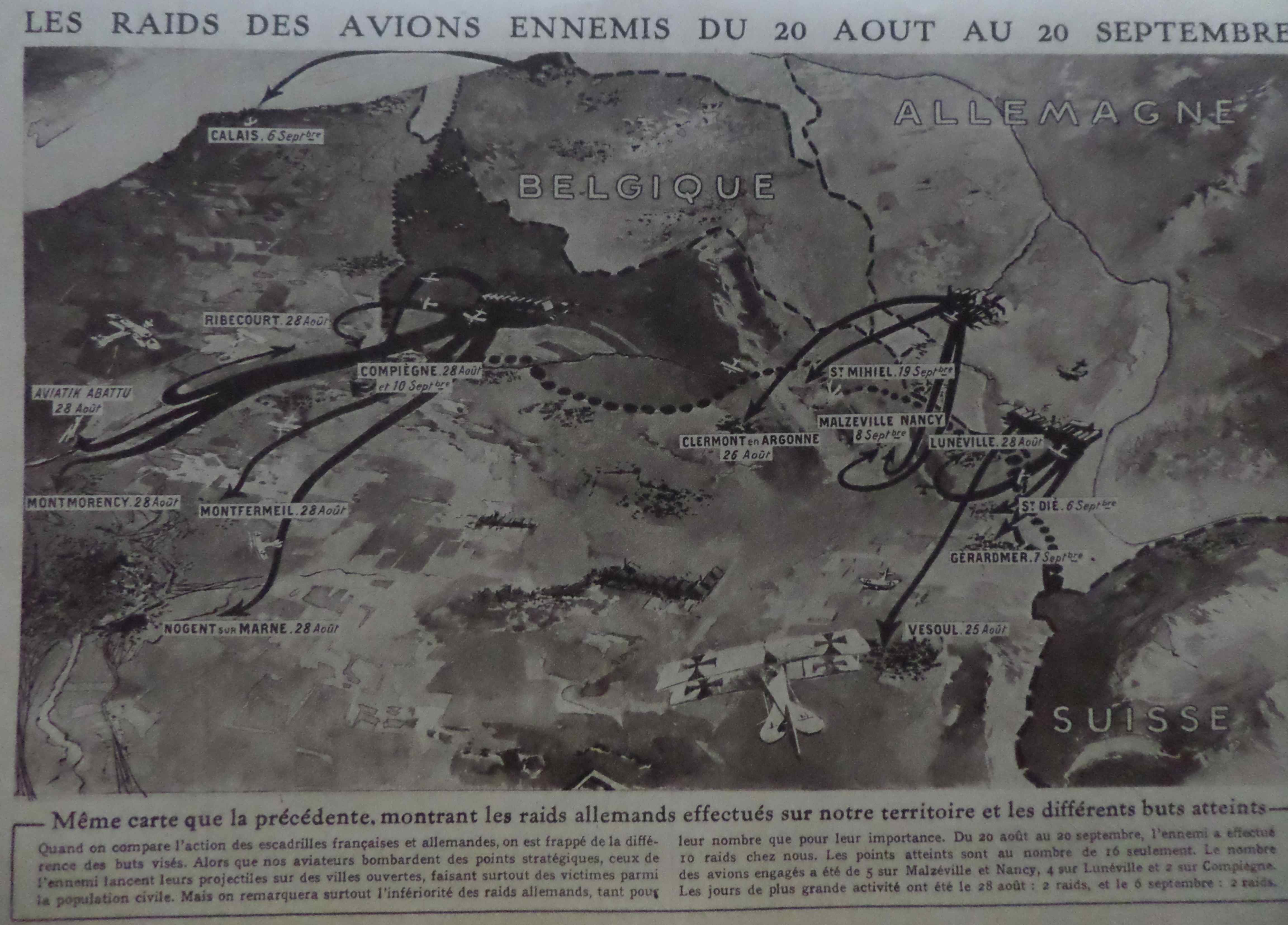 par rapport à l’inverse, les attaques des aviateurs allemands contre les usines et tranchées françaises: