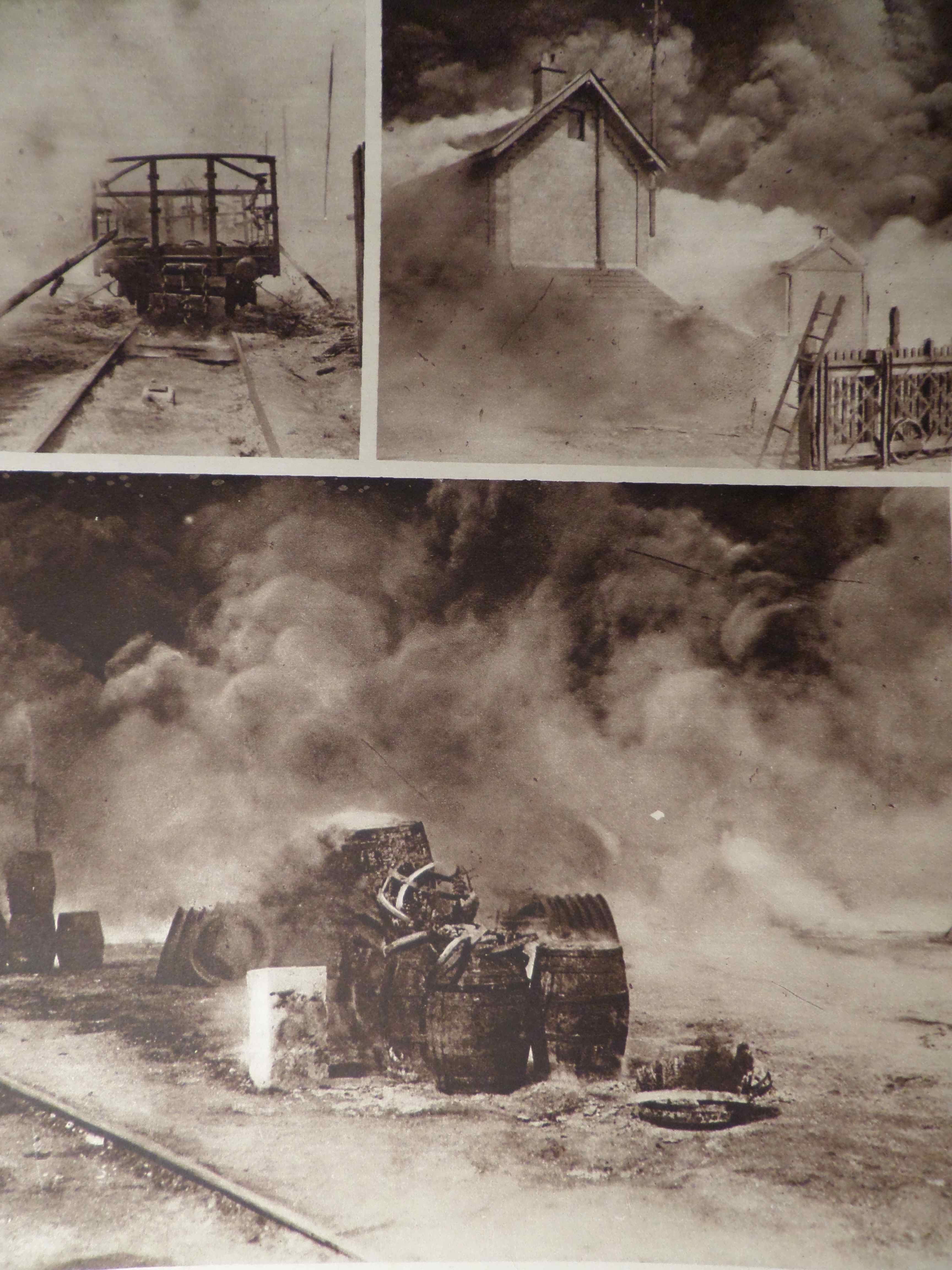 3-La gare de Mullheim en feu suite à une attaque alliée.