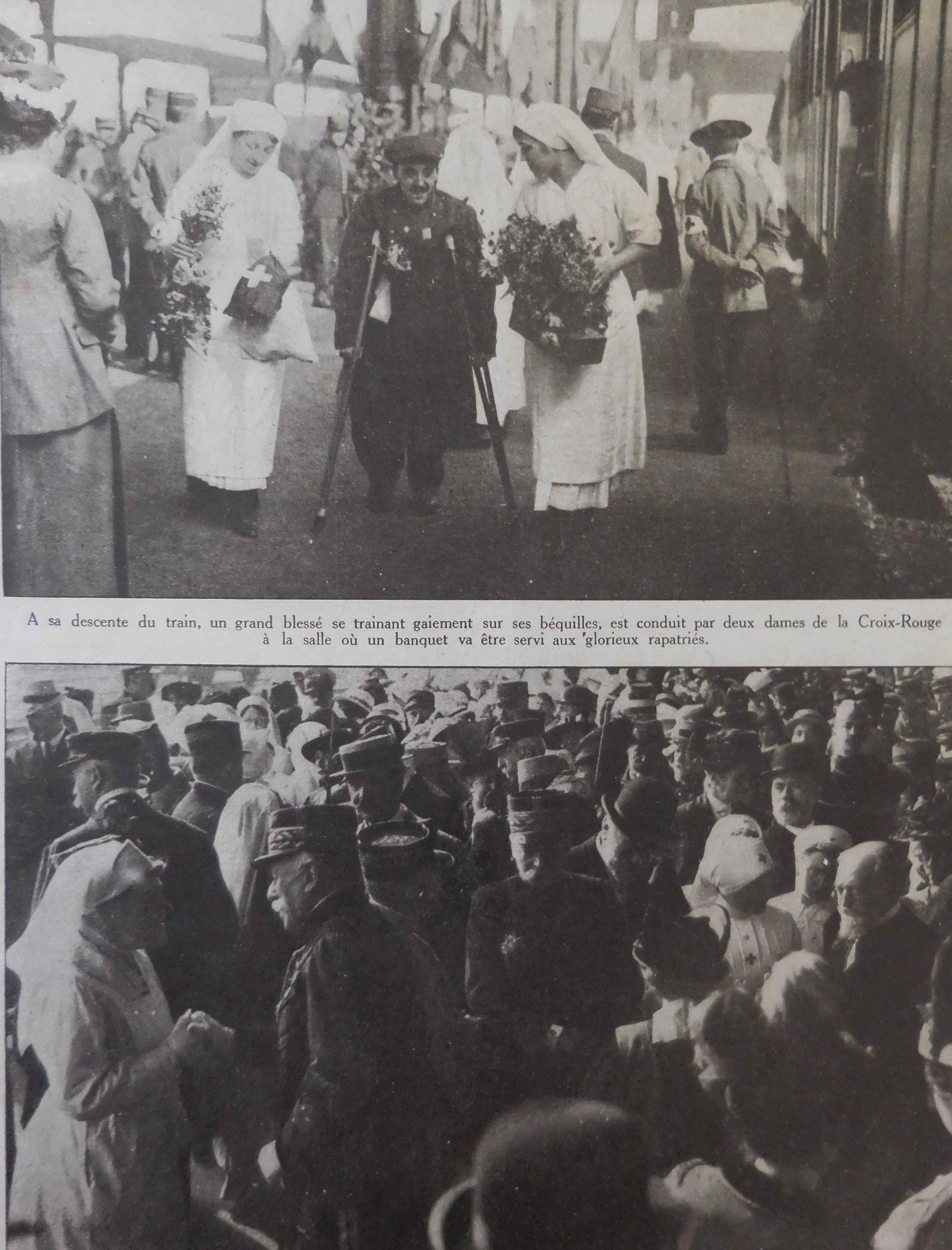 Comme dans le précédent La Guerre Photographiée, il est question du retour de prisonniers de guerre grands blessés à Lyon, en échange de grands blessés allemands rendus aux leurs. Deux pages sont consacrées à cet événement: