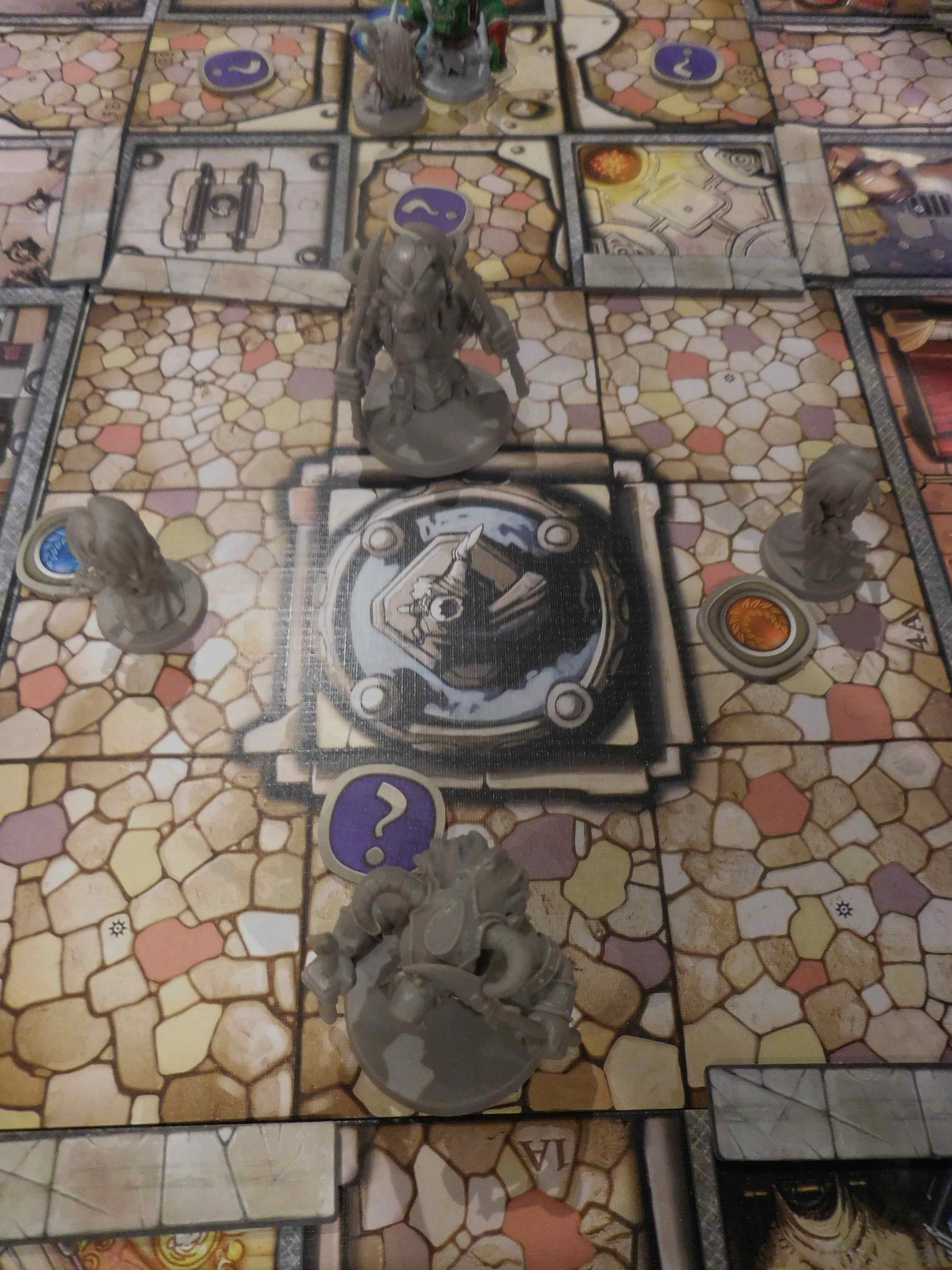 et peuvent être améliorées par la combinaison de meeples et ressources ou meeples et technologies. On peut aussi aller activer les cartes des autres ce qui leur donne un meeple de plus mais rend une seconde activation plus difficile (1 meeple au 1er coup, 2 meeples au second coup, 3 meeples au 3ème coup et c’est tout).