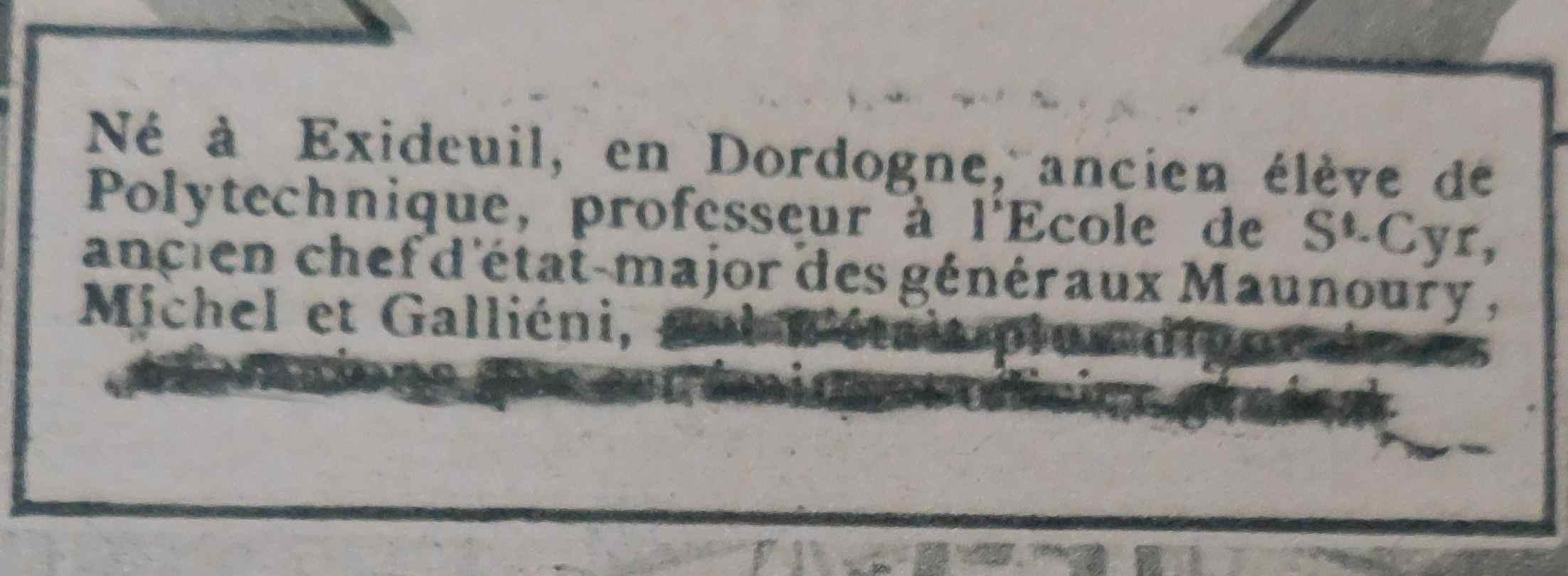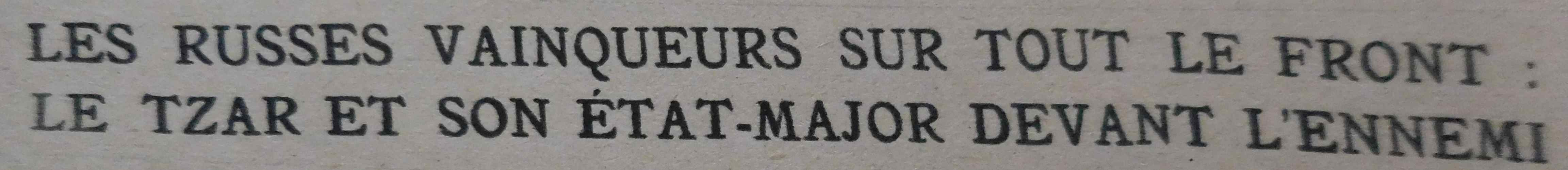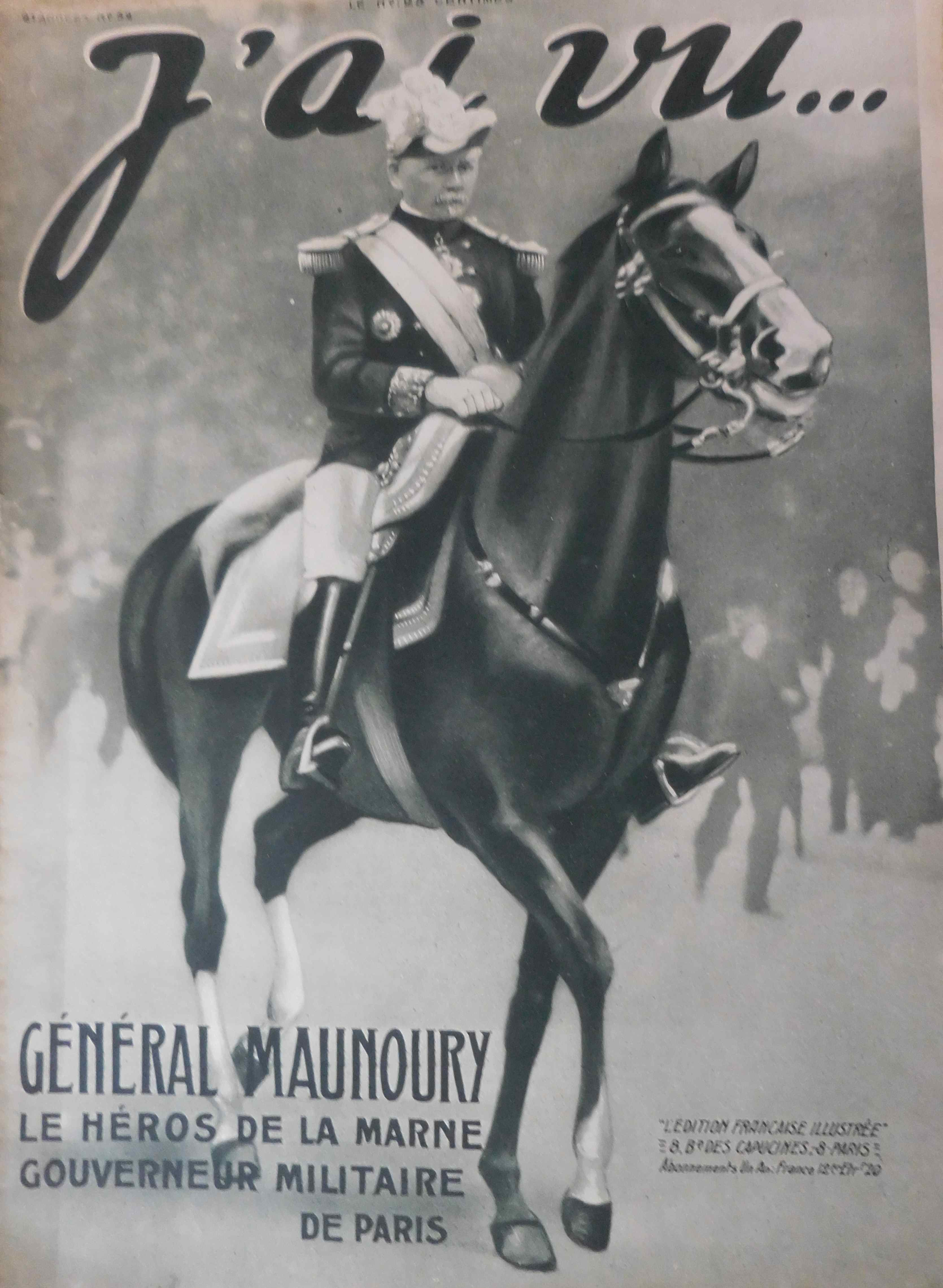 Après Galliéni à la une la semaine dernière, au tour d’un autre haut-gradé d’être en haut de l’affiche: le général Maunoury. Il le mérite peut-être plus que le précédent. Il vient d’être nommé la semaine précédente Gouverneur de la place de Paris. Commandant des troupes vainqueurs de la Marne en septembre 1914, il a été gravement blessé en inspectant des tranchées le 11 mars 1915 par une balle dans les yeux alors qu’il jetait un oeil par une meurtrière. Cette blessure le rendra aveugle jusqu’à la fin de ses jours, en 1923. Il deviendra maréchal de France à titre posthume. On comprend que cette photo à la une est bien antérieure à novembre 1915.