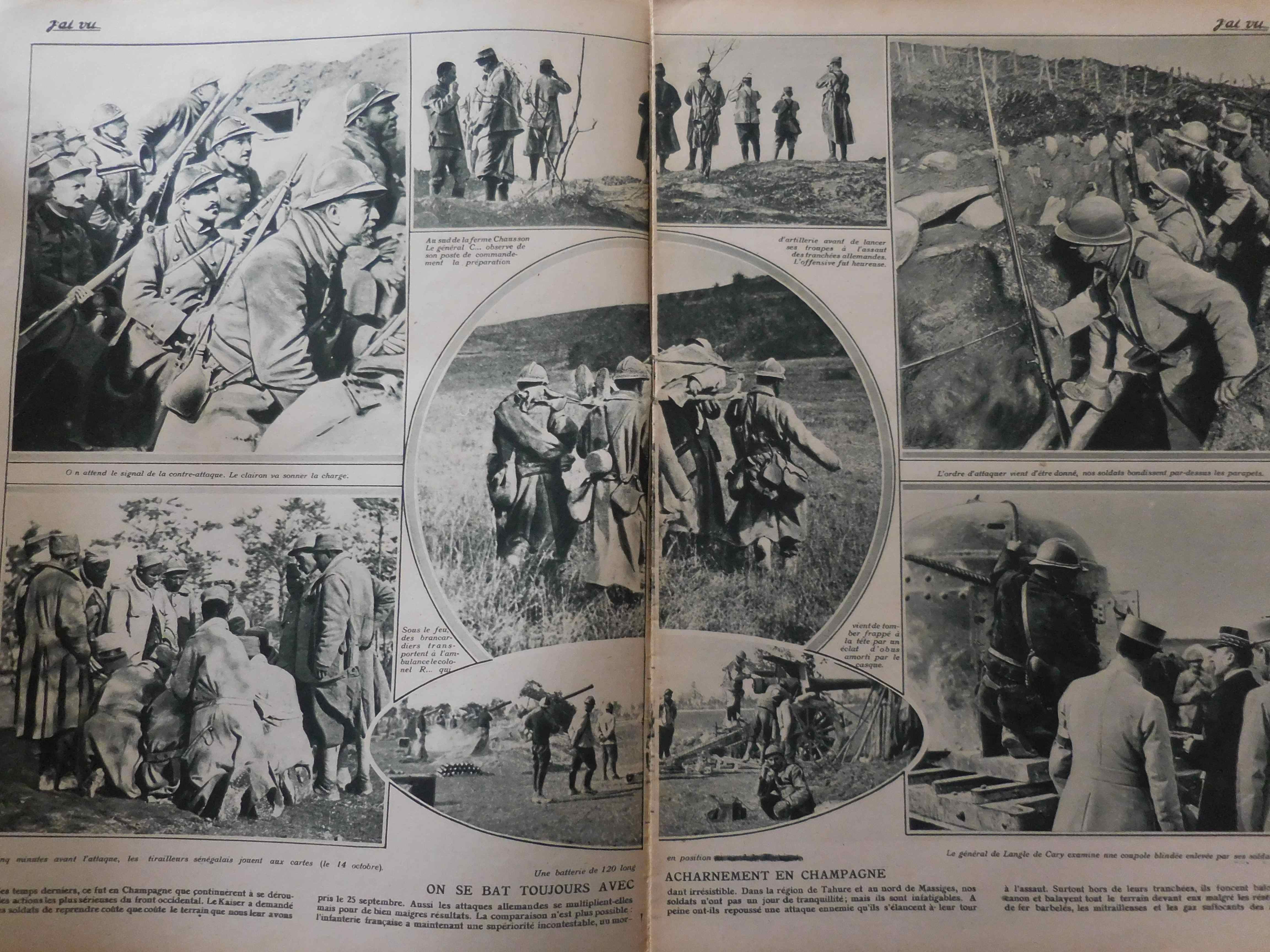 Une double page avec 7 photos pour illustrer les combats qui se déroulent toujours en Champagne.