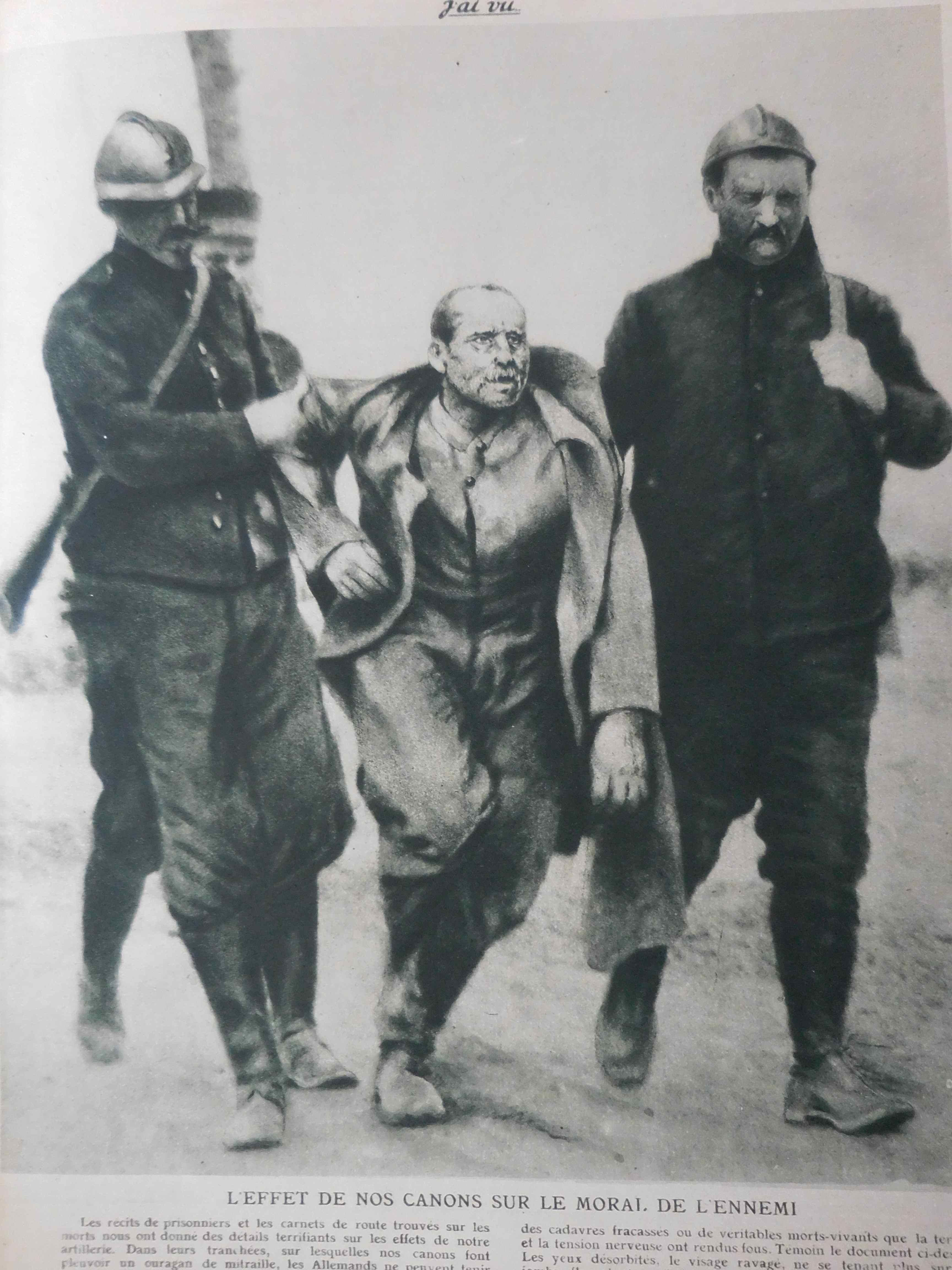 La guerre fait des prisonniers. Cet Allemand victime d’un bombardement violent français semble complètement assommé quand il a été fait prisonnier.