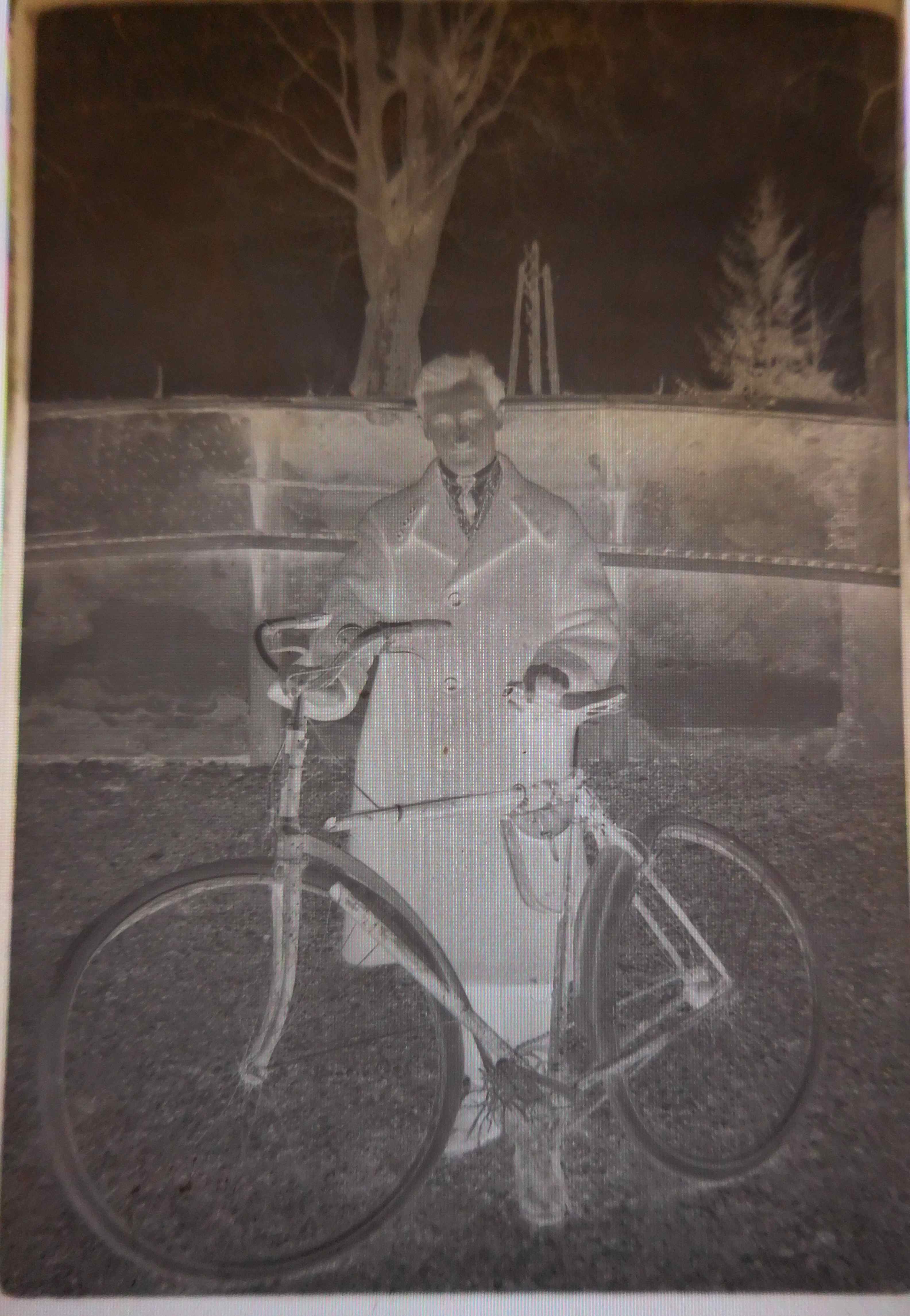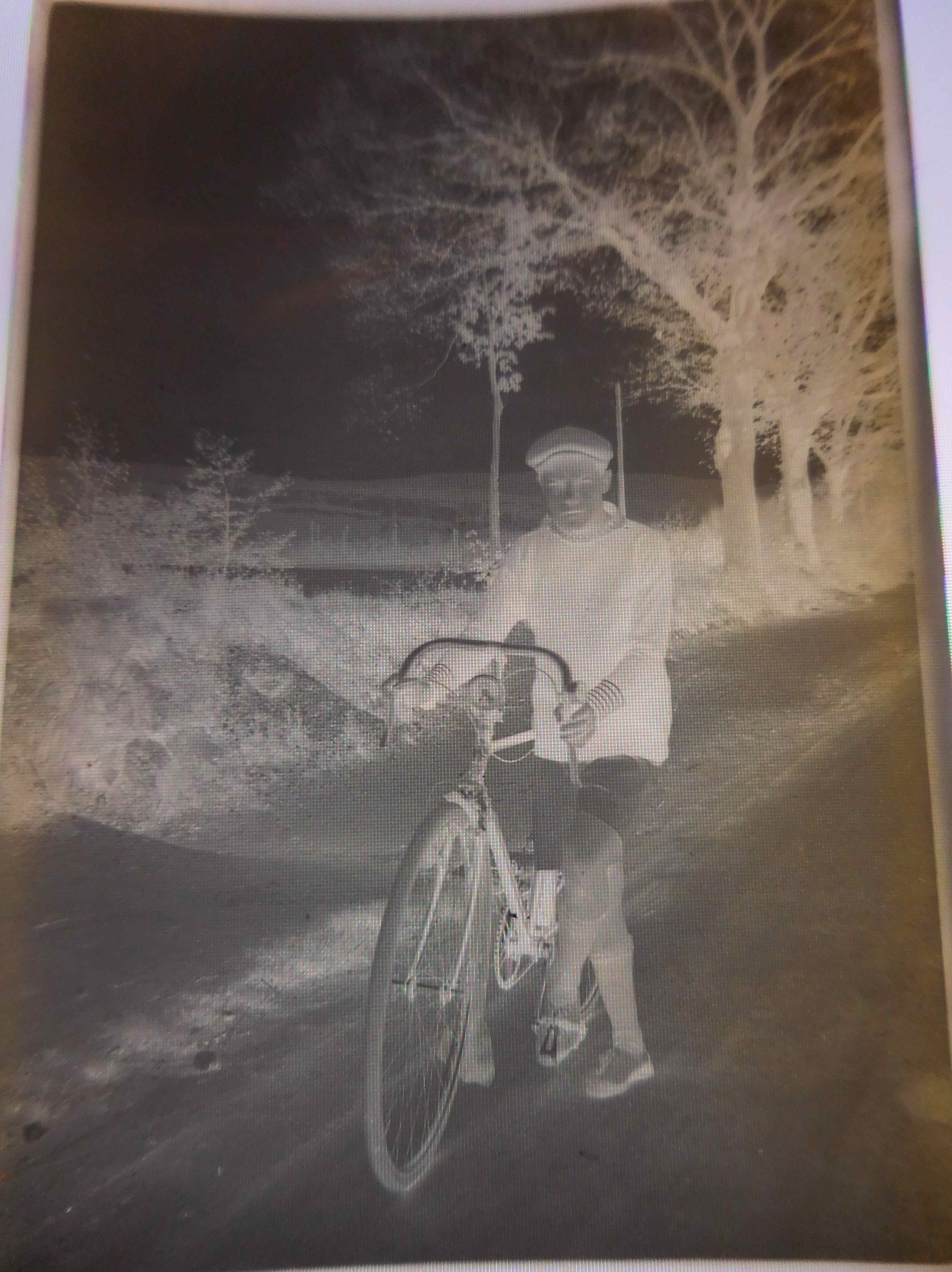 Trouvés dans une boîte de négatifs que m’a cédé Patrick ce dernier 14 juillet, quelques négatifs de personnes posant avec leur bicyclette vélocipèdede de tourisme ou de compétition.