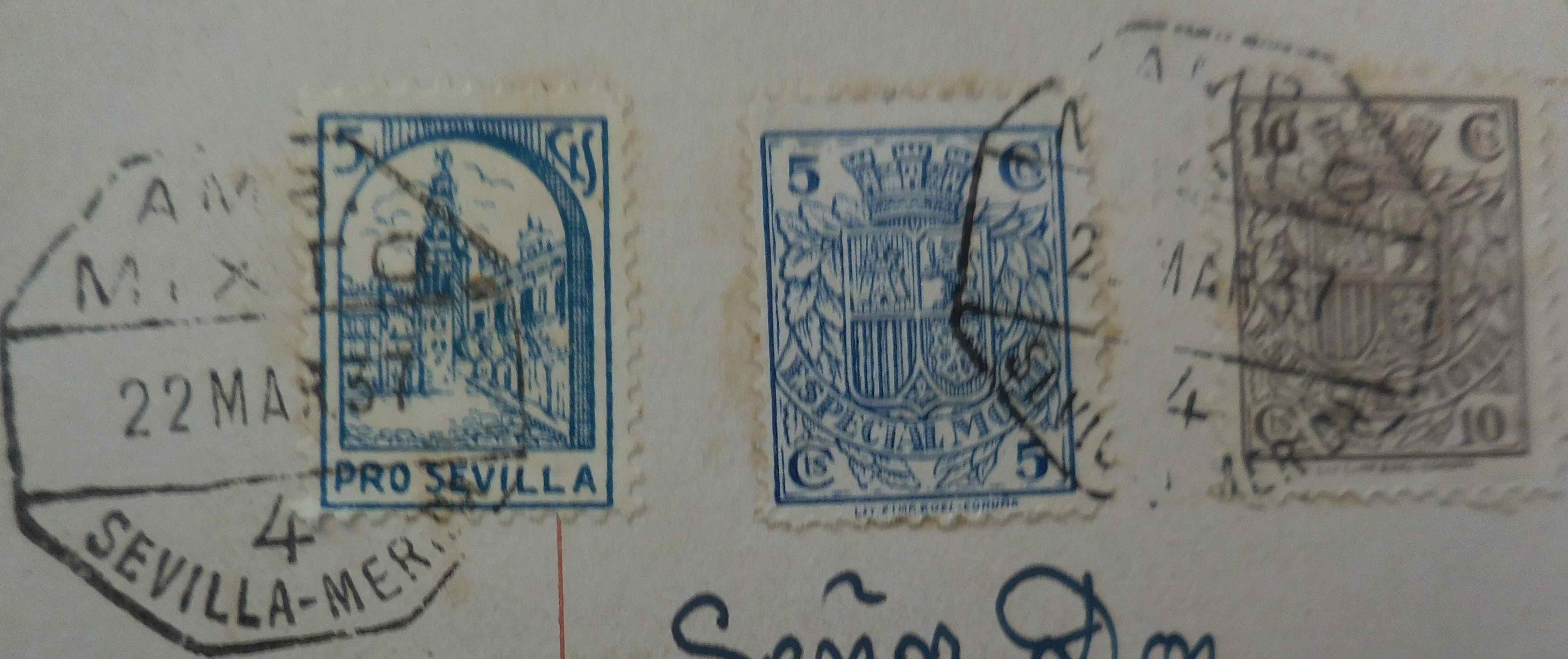 des timbres fiscaux sur lesquels Republica Espanola n’apparaît pas et un Pro Sevilla imprimé par les factieux.