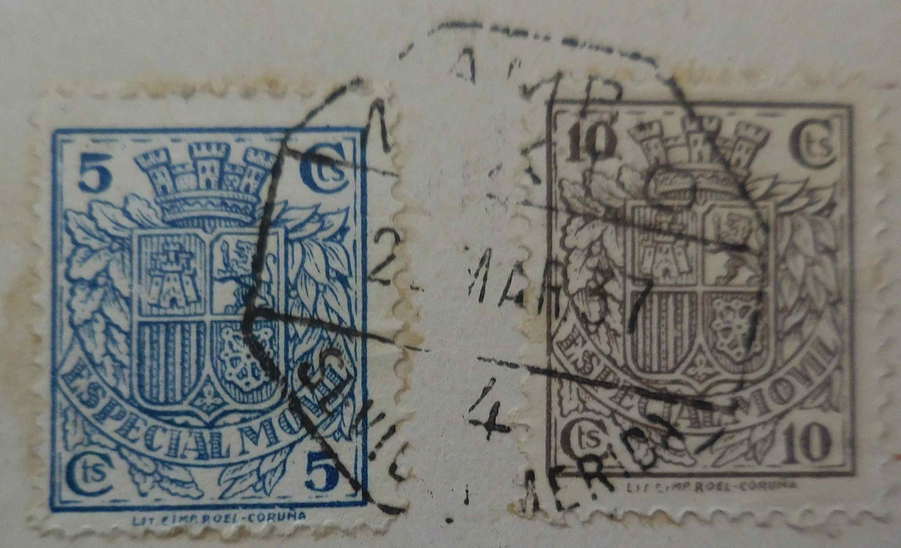 Comment affranchir un tel envoi sachant que les Fascistes n’ont pas encore imprimé leurs propres timbres et qu’ils ne souhaitent pas faire partir des lettres avec des timbres de la République Espagnole qu’ils combattent et veulent abattre ? De plus l’approvisionnement en petites figurines doit être nul.