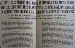 Une finale fort moyenne aux dires de Gabriel Hanot, envoyé spécial du Miroir des Sports à Colombes, le dimanche 09 mai 1937.
