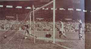Un instantané particulièrement bien réussi pris au moment où l’ailier sochalien Lauri, sur passe de Williams, vient de tromper le gardien strasbourgeois Schwartz pour une égalisation à 1 partout. Tout allait mieux pour les Doubistes qui bientôt ajouteront un autre but, celui de la victoire.