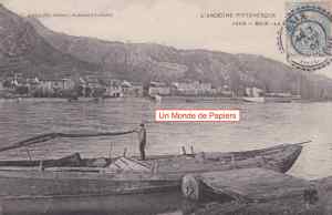 Deux cartes postales présentant ce bac prises de la rive gauche avec à l’arrière-plan le village de Baix en Ardèche.