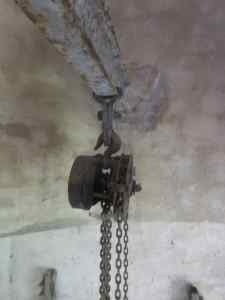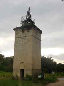 Le sommet de cette tour ressemble beaucoup à un treuil de traille. A l’intérieur, un escalier mène jusqu’au sommet de la tour.