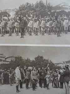 En haut, le bombardement du Monte Santo par les troupes alpines italiennes. En bas, des volontaires italiens (arditi) près à attaquer (peut-être).