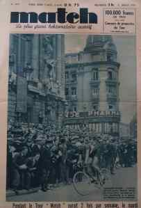 Match du 2 juillet 1937. Double une avec d’un côté, la victoire d’Archambaud sur la piste mouillée du vélodrome de Charleville, à l’occasion de la seconde étape du Tour de France.