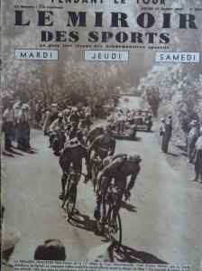 Le Tour est reparti de Nice le mardi 13 juillet pour 2 demi-étapes dans ce Miroir des Sports du jeudi 15 juillet. On voit à la une des échappés emmenés par Vicini, Sylvère Maës le maillot Jaune et Martano dans l’estérel.