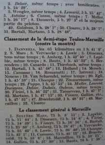 Danneels vainqueur de la 1/2 étape contre-la-montre par équipes entre Toulon et Marseille, sur 69 km. A Marseille, Maes garde son paletot jaune.