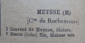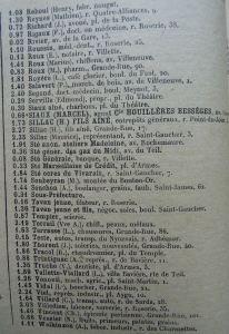 Encore un nougat, Henry Reboul, un autre café glacier Royère au Fust, Tavan filature de le rue Roserie et soyeux boulevard Saint-Gaucher, un autre soyeux dans la Grande-Rue, Thorent, le transporteur Teste déjà présent rue Adhéra (Gineys descendra de la Haute-Ardèche plus tard), Villard un autre transporteur à Sarda,