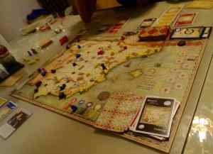 On y parvient grâce à Daniel qui nous construit des voies ferrées pour accélérer nos déplacements dans la péninsule ibérique, à Marie qui a des facilités à distribuer les cartes. En tant que médecin, je traite les maladies plus facilement mais le pouvoir est moins important que dans le jeu de base.