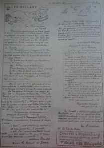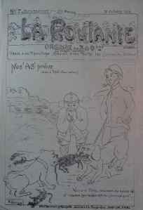 La Roulante est passé à un 4 pages, la une d’A. Guille y moque les aviateurs, les « As » qui ont l’honneur des communiqués à la place des taiseux, les Poilus de première ligne, la chair à canon. Les « As » sont devenus des chiens se disputant… les rats qui pullulent dans les tranchées.