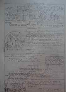 A gauche, un conte d’Alphonse Daudet sur la Tarasque. Sauf qu’il s’agit là de la Tarasque du Nord, animal nouveau et encombrant, les tanks, les chars de combat. Bouratin va le découvrir au front puis en rêver la nuit venue.