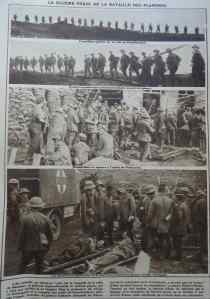 Les conséquences de l’attaque du 20 septembre 1917 sur les Flandres en quatre vues: les sapeurs gallois pour remuer de la terre, les Ecossais accompagnant des prisonniers, hommes près de Poëlcapelle, près du lieu de l’accident de Guynemer, des grands blessés allemands évacués par la Red Cross.