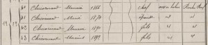 Et dernier nom de cette première face, écrit juste derrière la palme de 1938… qui a disparu à Ancône lors du déménagement de la Mairie ! Marius est venu au monde le 23 juillet 1892 à Caderousse. C’était le second enfant du couple de Jean-Maurice Désiré Chicornard et Marie Joséphine Capdeville. Comme on pouvait s’en douter, l’aîné avait été prénommé Maurice comme son père.