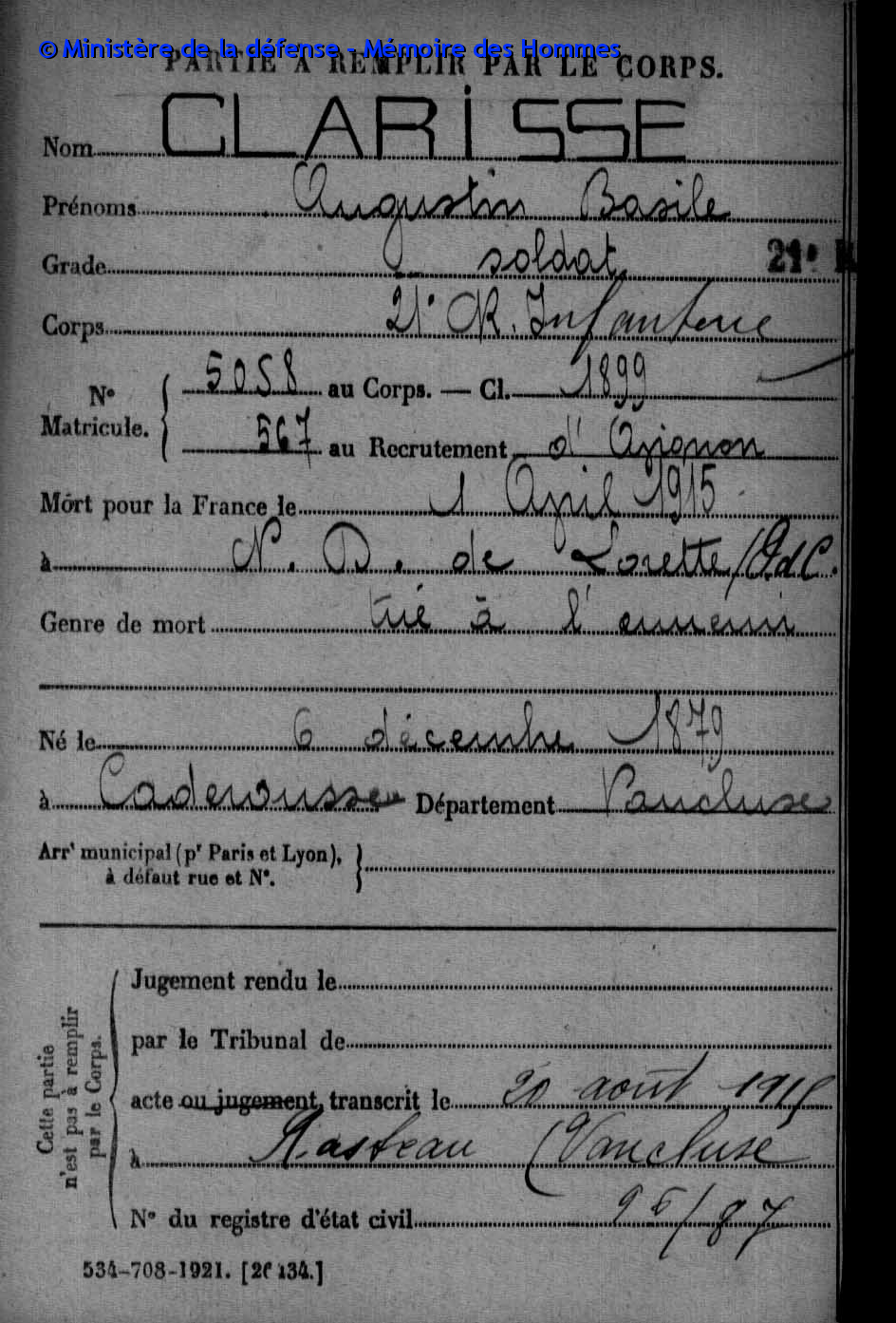 registre matricule