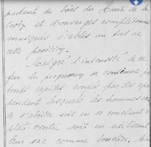 Tout est dit dans ces quelques lignes: les Allemands ont bien préparé ce piège et les pauvres hommes du 2ème bataillon n’ont d’autre solution que de s’allonger sur la ventre et à se servir de leur sac comme protection, bien légère face à la puissance des armes. Vous l’avez compris, Lucien fait partie de ceux-ci. Le bilan de la journée est terrible:
