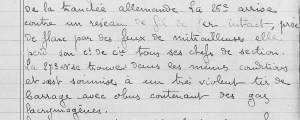 La 27ème compagnie dans laquelle sert Marius, est arrêtée sur des barbelés que les obus n’ont pas ouvert. De plus, les Allemands ripostent par des tirs d’armes chimiques.