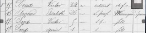Après la disparition de sa femme puis de sa mère, Jean Victor Doux ne restera pas seul et ira chercher une autre femme. Pas très loin de chez lui, une voisine comme on le voit dans la page élargie du recensement de 1886….