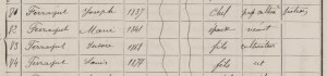 Louis Barbe Ferragut était donc né le 04 décembre 1877, ce qui explique son original second prénom, masculinisé pour l’occasion. Il était le cinquième enfant d’une fratrie de six, quatre garçons et deux filles. Leurs parents, Joseph Ferragut né en 1837 et Marie-Thérèse Roche née en 1841 étaient tout deux du village et avaient unis leurs destins le 03 février 1864. C’était un couple d’agriculteurs qui menaient une ferme dans le quartier des Négades, des terres basses facilement inondables donc pas très riches. Voici donc la fratrie au complet sur ce document de 1881.