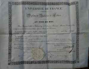Un bien joli papier ancien que ce diplôme de Bachelier ès Lettres. Un grand papier de 43×34 cm, un vieux papier puisqu’il a été délivré le 27 septembre 1838…