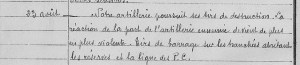 A partir du 20 août, les artilleries française et allemande se toisaient dans des duels sous lesquels les fantassins des deux camps, dans les tranchées, en étaient réduits à l’état de pions qui comptaient les points. Le 24 août, le duel se calma et ce fut l’attaque de l’infanterie pour reprendre quelques dizaines de mètres. Mais Joseph n’y participa pas. La veille, le 23, il avait été touché par un éclat d’obus au thorax et évacué vers l’arrière, vers une ambulance, à Cerise…