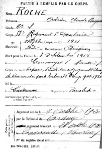 Fiche matricule d’Adrien Claude Auguste Roche de Mémoire des Hommes.