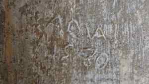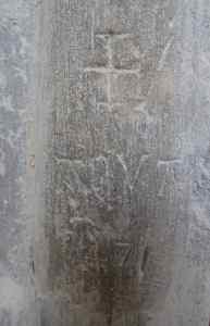 Ce document pose problème. La crue du Rhône de 1471 est bien répertoriée. Mais l’écriture des chiffres ne date manifestement pas de 1471. Elle ressemble à ce qu’écrivaient les carriers et qu’on peut lire à Saint-Restitut par exemple. On peut raisonnablement penser que cette date a été inscrite au XIXème siècle. Certainement d’après des écrits plus anciens. Toujours est-il qu’il s’agit-là d’un second document exceptionnel, peut-être le seul repère de toute la vallée pour cette date.