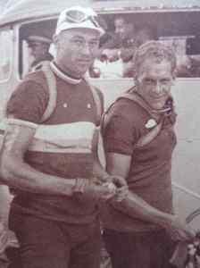 Coup de chance du photographe ! A droite, le vainqueur de l’étape de la veille et à gauche, celui qui va l’emporter au soir de la seconde étape, à Saint-Brieuc, le Luxembourgeois Majérus.