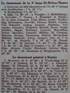 Troisième étape Saint-Brieuc-Nantes traitée plus superficiellement par le Miroir des Sports pour cause de bouclage de l’hebdomadaire.